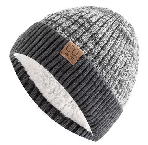 Unisex Two Tone Fur Lined Winter Beanie Warm Knitted Hat For Men Women black 56cm 60cm