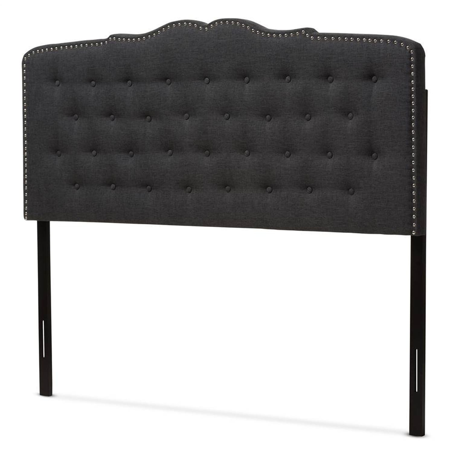Dark Grey King Fabric Upholstered Headboard with Curved Top and Button Tufting for Modern Contemporary Style