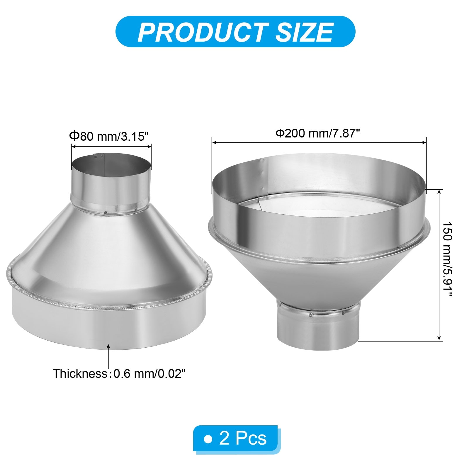 Round Duct Reducer Increaser Connector, Galvanized Steel Air Duct Adapter Pipe Fitting - Silver Tone