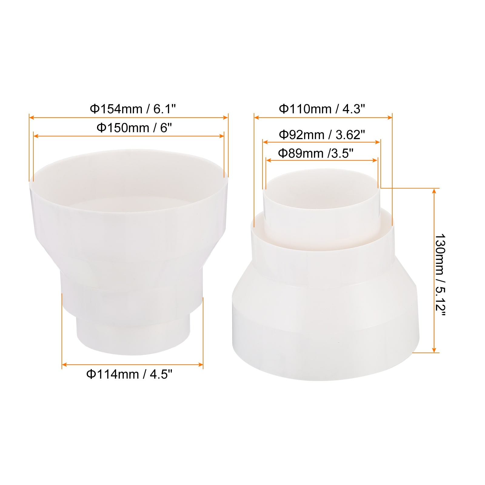 Duct Reducer, Duct Connector Ducting Inline Adapter Increaser Plastic Vent for HVAC Heating Cooling Air Ventilation - White
