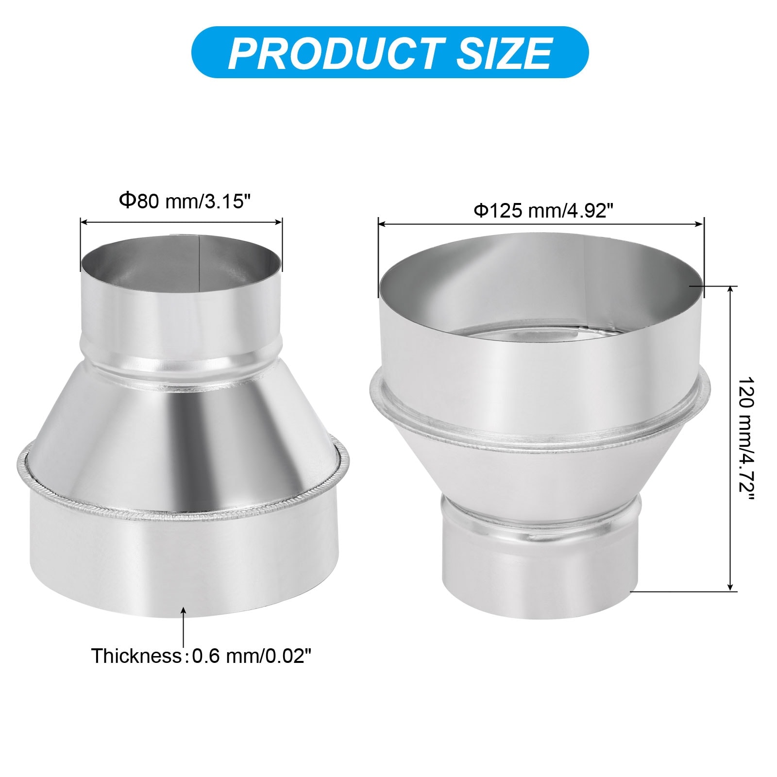3" to 4" Galvanized Steel Round Duct Reducer Adapter Connector, Silver Tone - Silver Tone