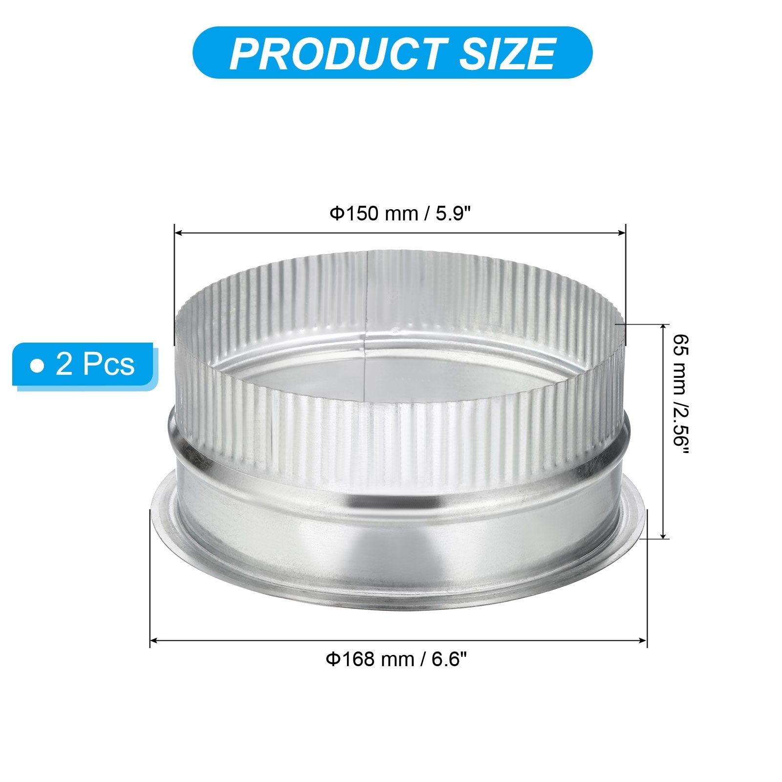 Duct Collar, Duct Connector Flange Tight Vent Duct Fitting for Heating Cooling HVAC Ventilation Home Office - Silver