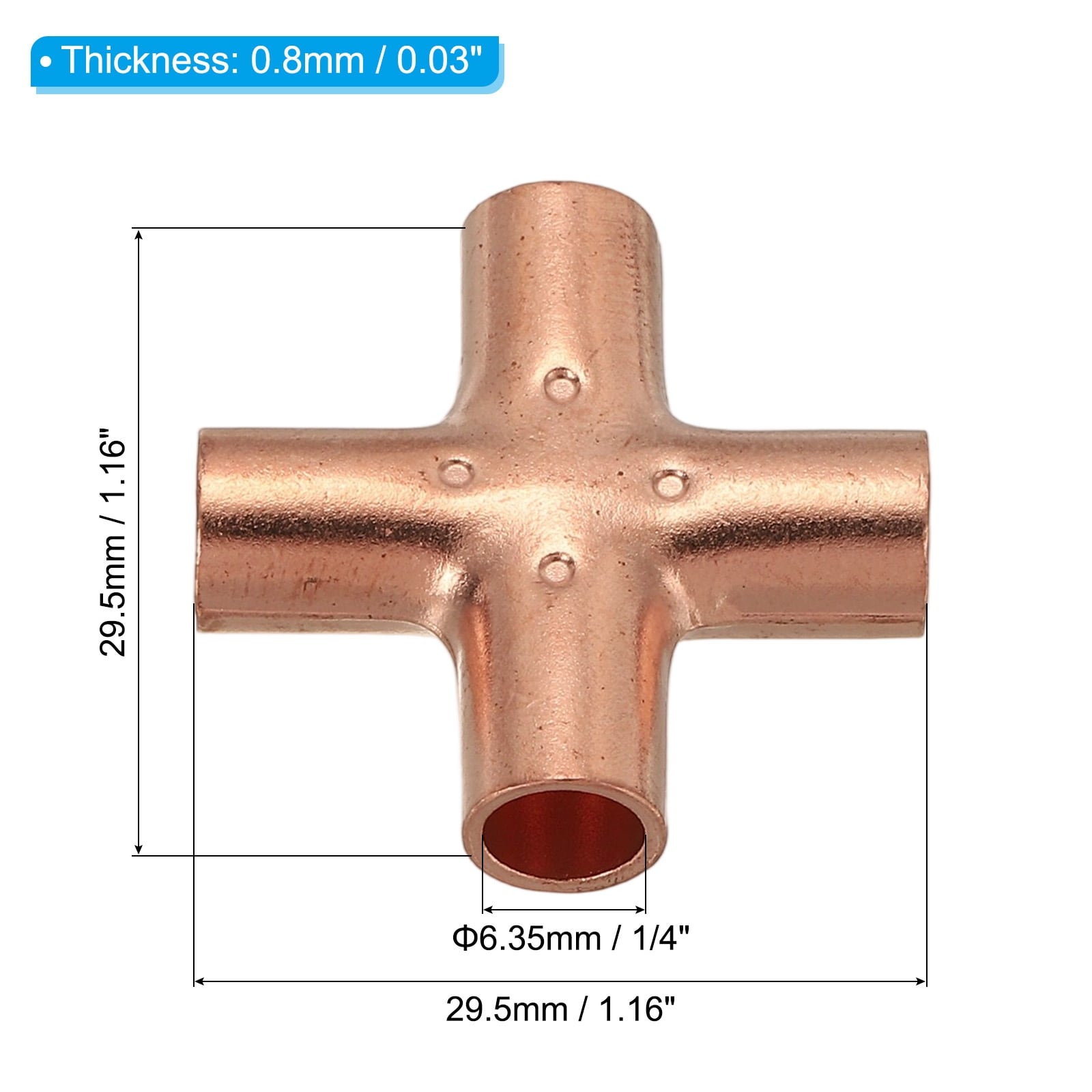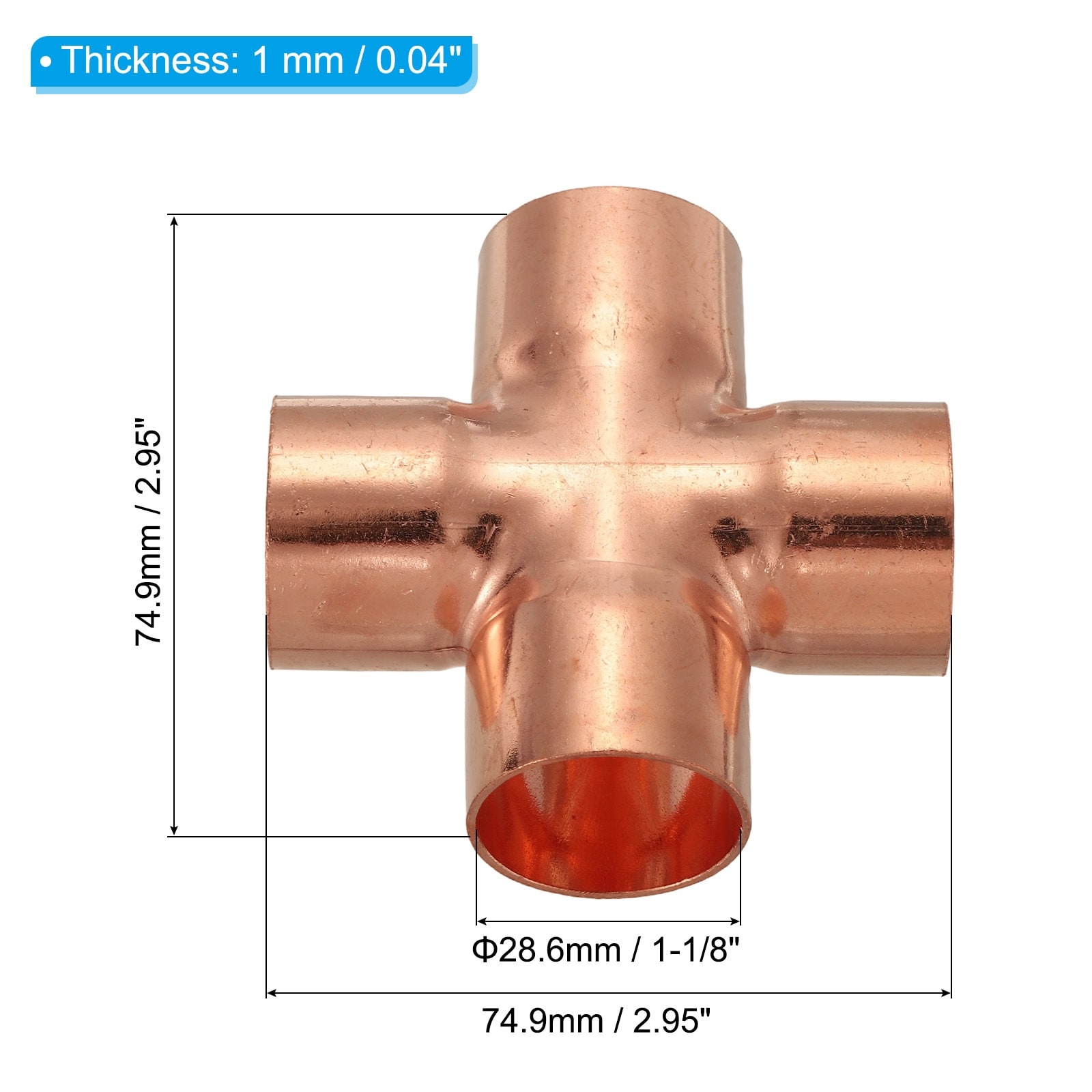Copper Cross Pipe Fitting, 4 Way Welding Copper End Feed Equal Pipe Connector for Plumbing Air Conditioning Refrigeration