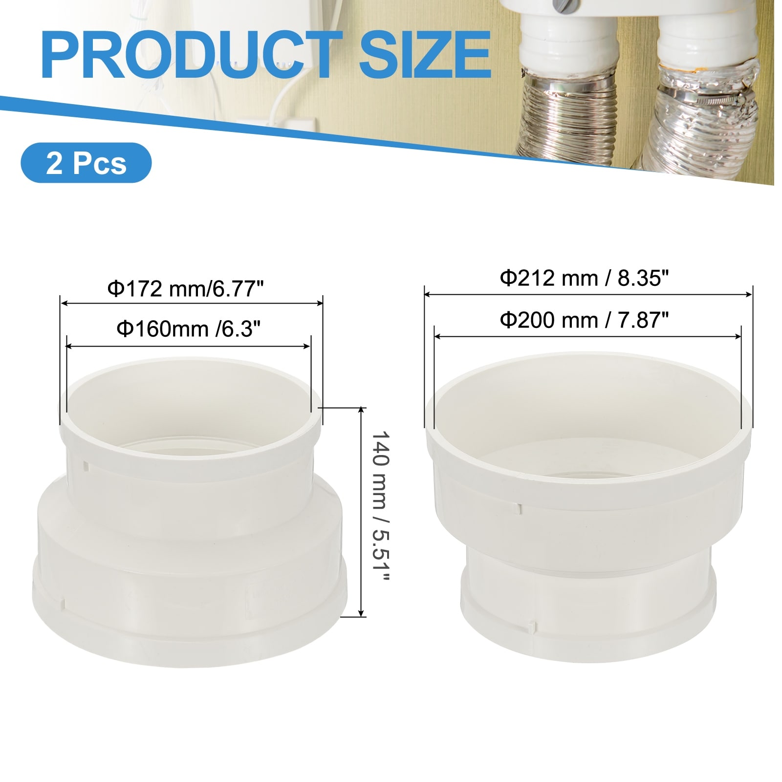 Duct Reducer, Pipe Increaser Adapter Ducting Airflow Tube Pipe Fitting - White
