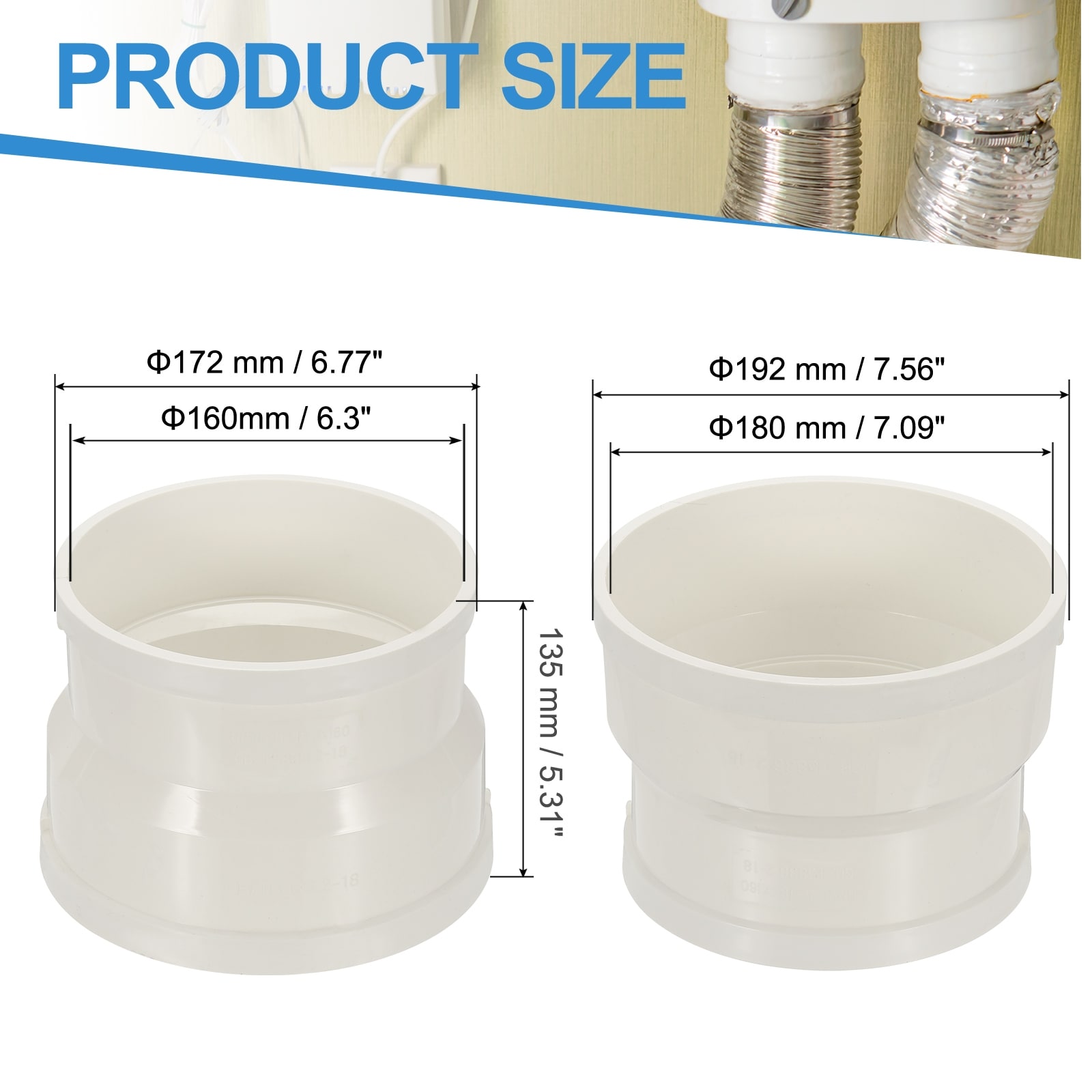 Duct Reducer, Pipe Increaser Adapter Ducting Airflow Tube Pipe Fittings - White