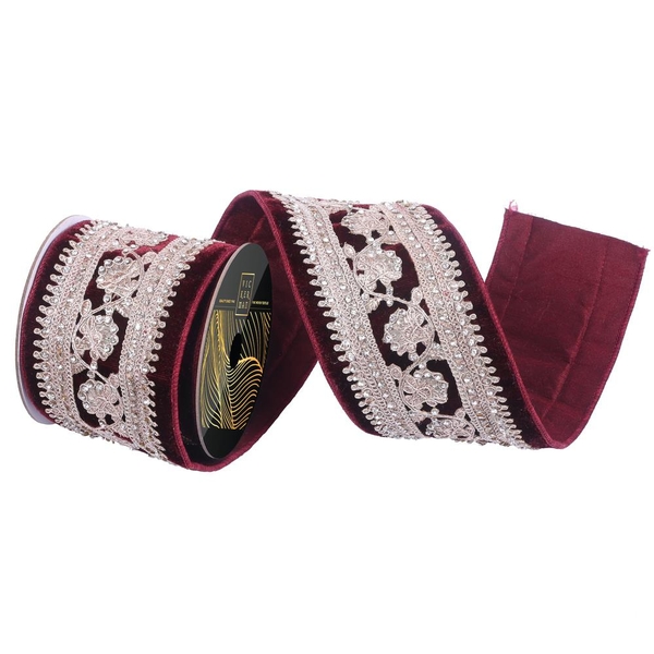 Vickerman 799925 - 4"x5yd Burgundy Velvet Chmp Jewel Center (QK257165) Red Colored Christmas Ribbons