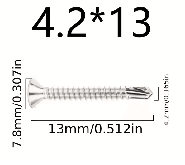 50 Piece 410 Stainless Steel Flat Head Self Drilling Screws M4.2 4.2x 13 50pcs