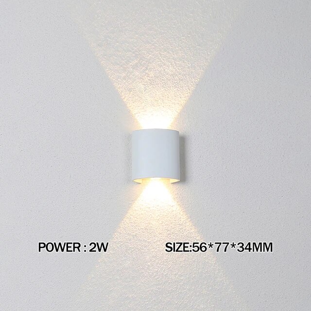 Waterproof IP65 Aluminium LED Wall Lamp For Bedroom, Living Room, Corridor Indoor Outdoor Lighting Warm White (2700 3500K) 2W White