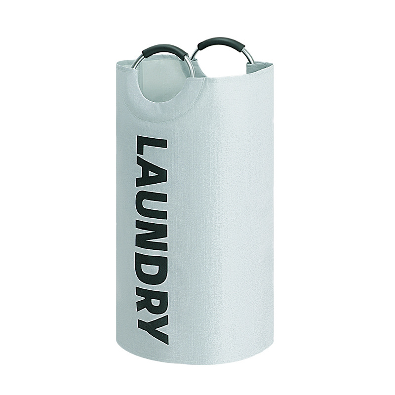 Large Waterproof Laundry Basket Foldable, Contemporary Round Polyester Blend Hamper With Aluminum Handles For Bathroom 1pc Light Blue