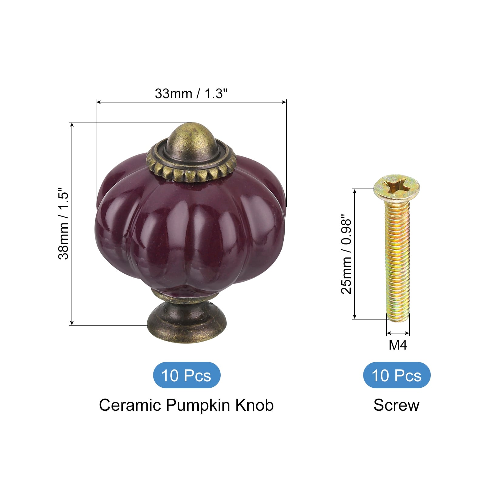 10pcs Dark Purple Pumpkin Knobs, Vintage Drawer Pulls with 10 Screws, Ceramic