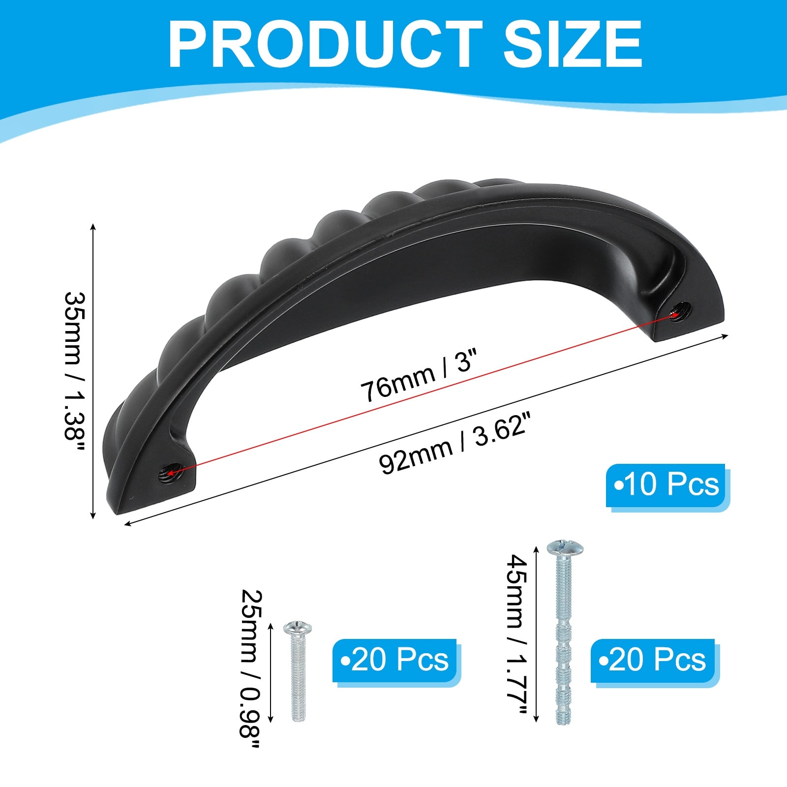 10Pcs Cabinet Cup Pulls 3" Hole Center Vintage Drawer Handles Knobs Silver