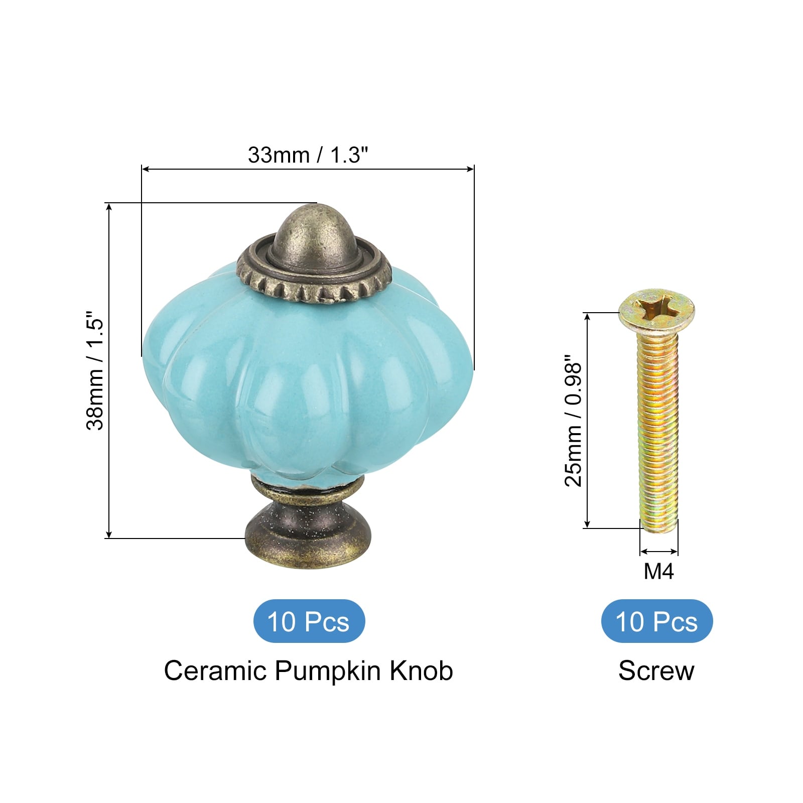 10pcs Dark Purple Pumpkin Knobs, Vintage Drawer Pulls with 10 Screws, Ceramic