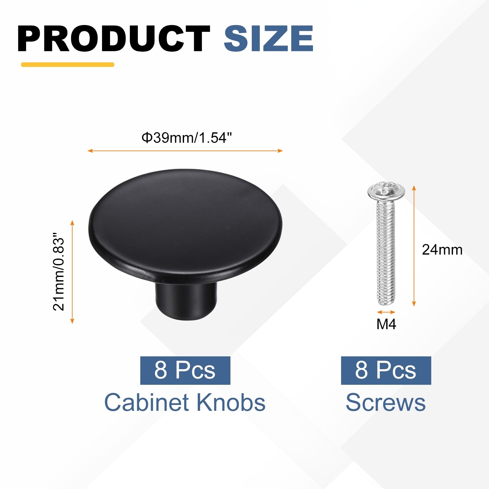 8Pcs Cabinet Knobs, 1.54" Single Hole Round Drawer Knob with Screws, Black