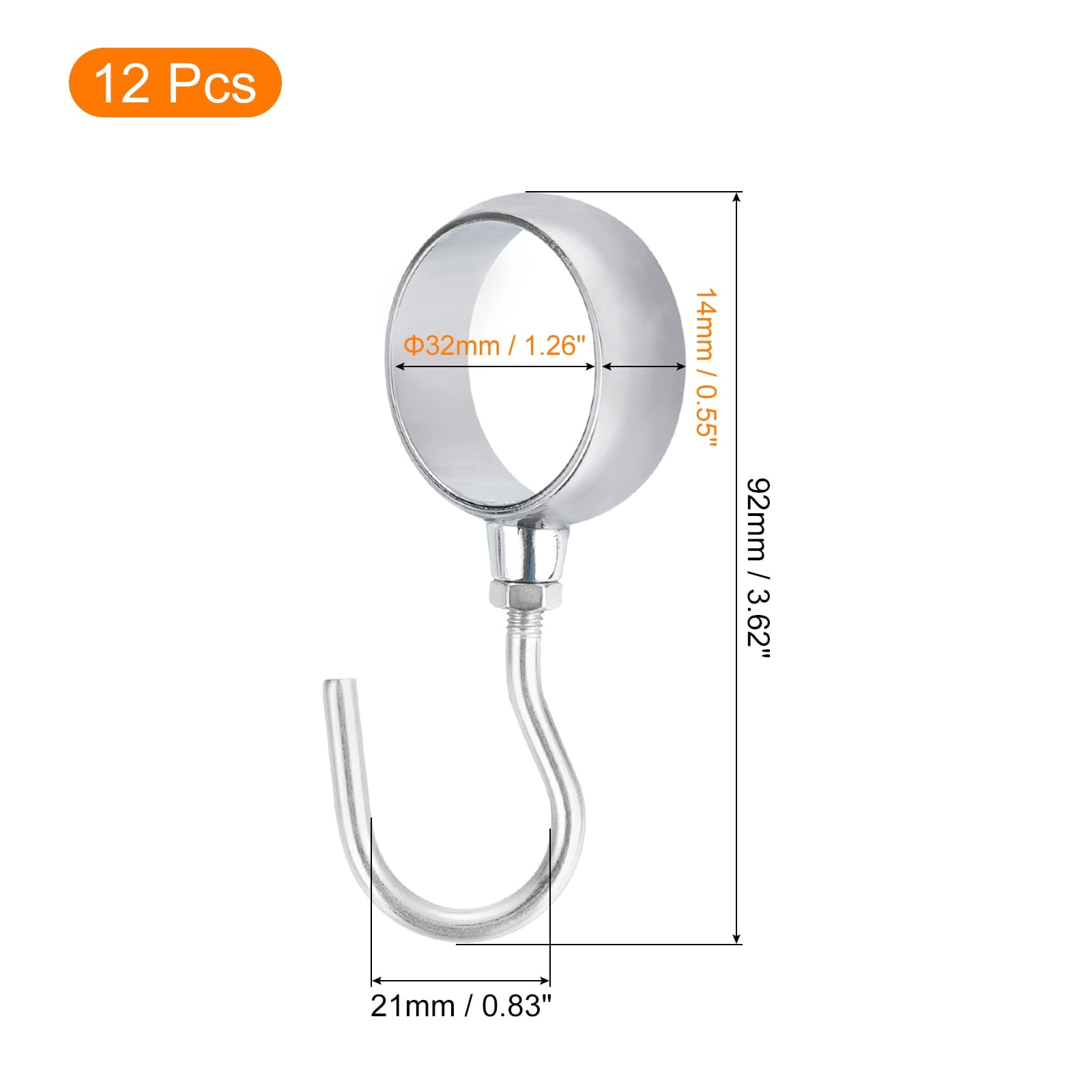 Stainless Steel 32mm Inner Dia Adjustable Pipe Rod Hooks Coat Hook - Silver