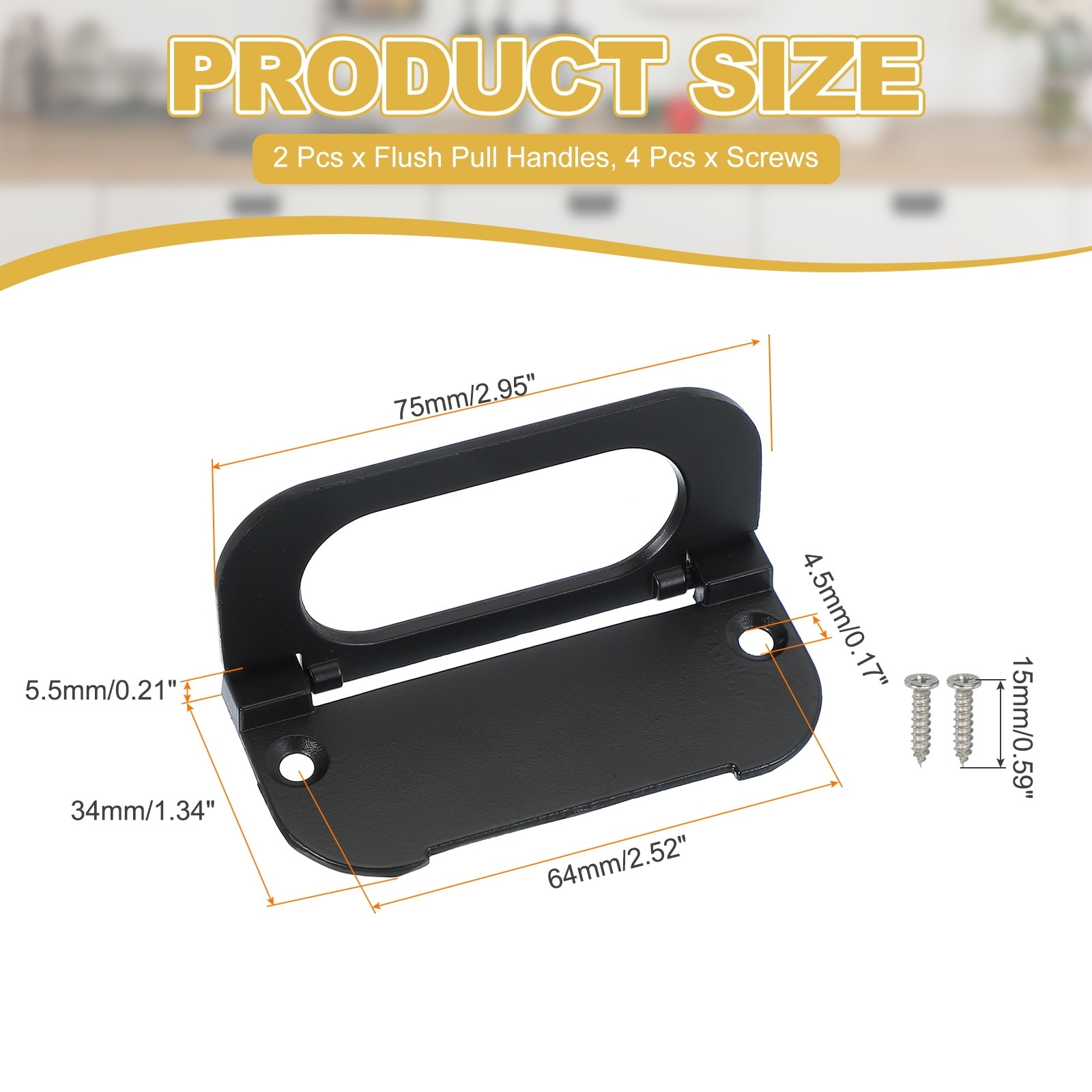 2Pcs 2.9 Inch (75mm) Flush Ring Pull Low Profile Drawer Pull with Screws Gold