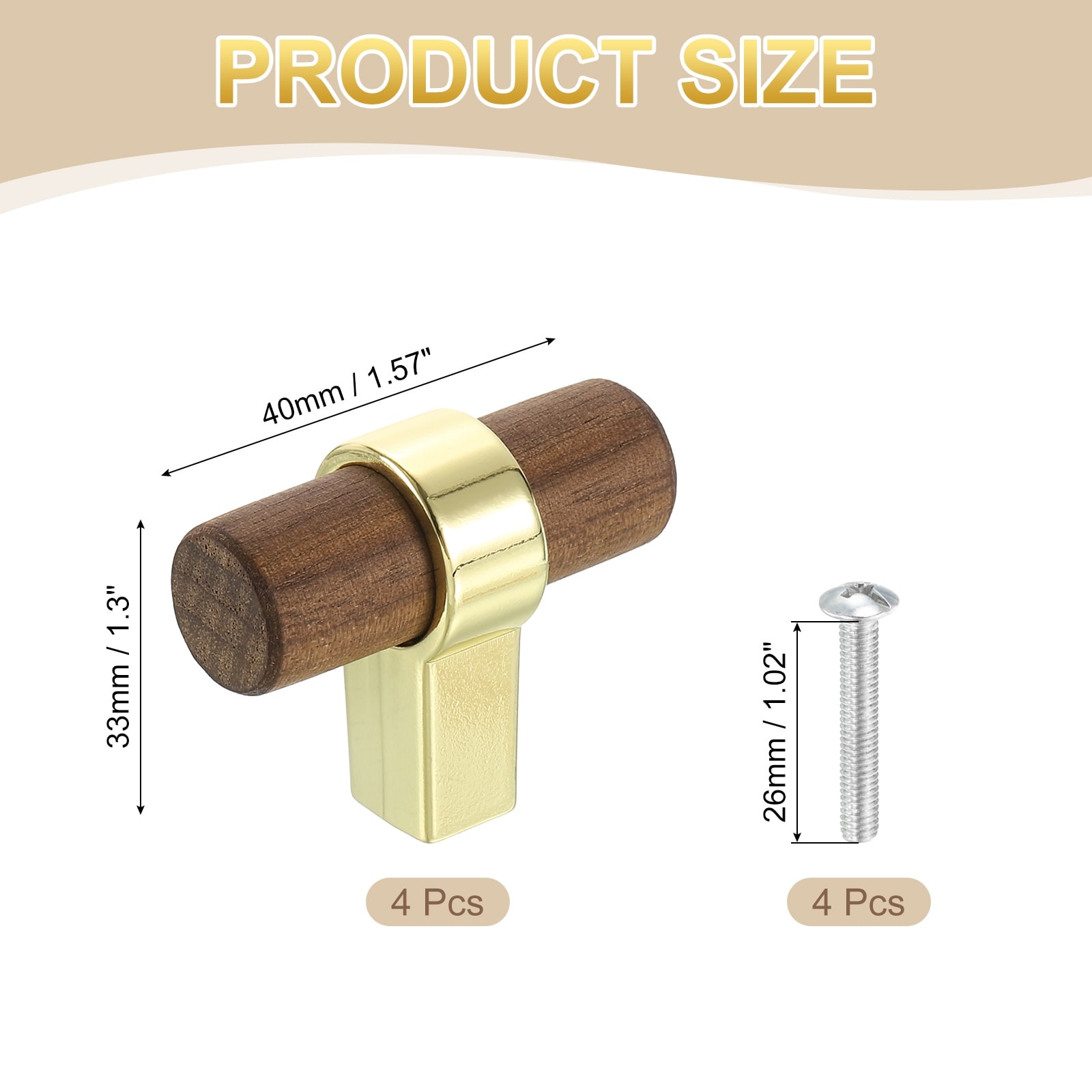 4Pcs 1.57"x0.71" T-Bar Wooden Drawer Pulls with Silver Base, Beech
