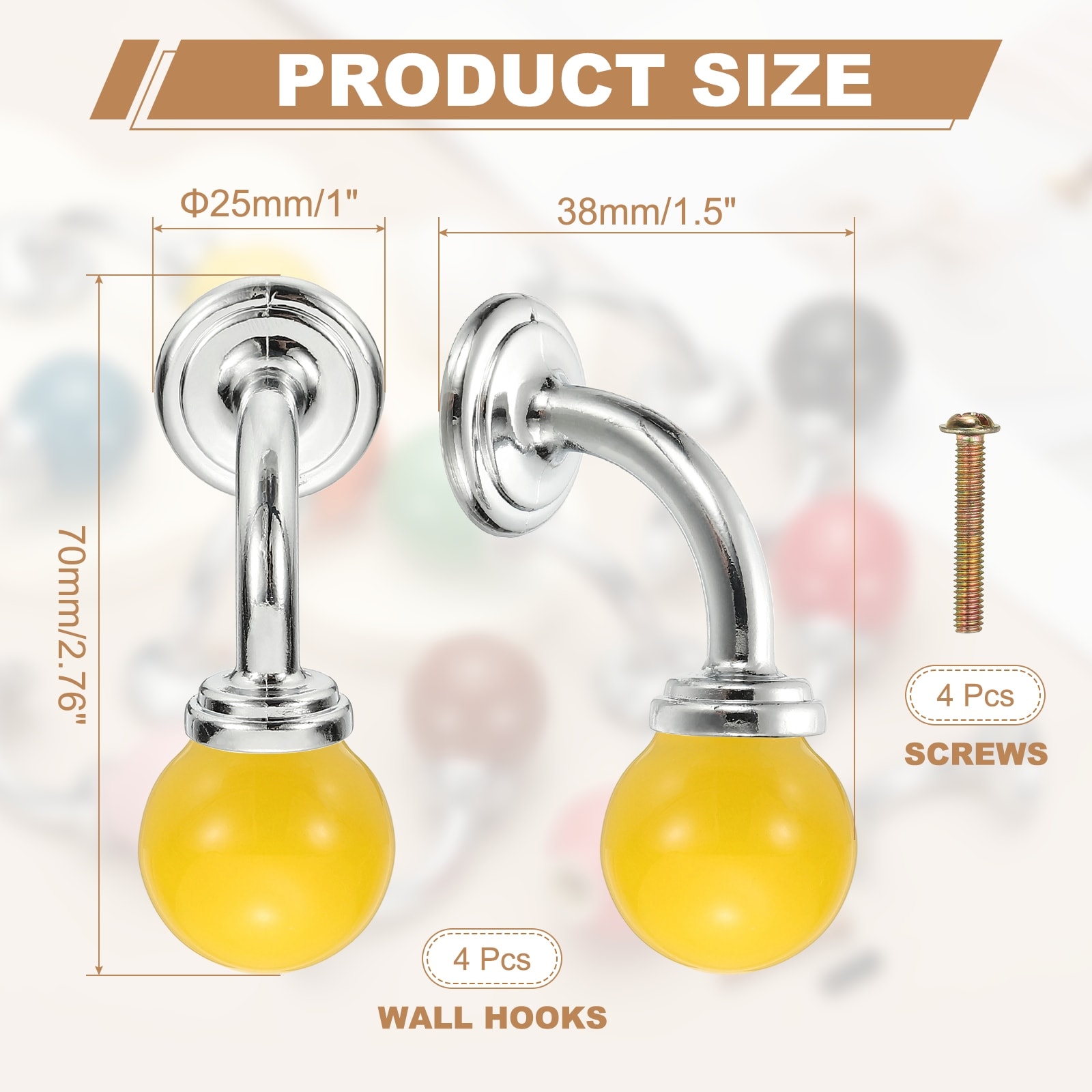 4 Pcs Wall Hooks, Ceramic Drawer Door Cabinet Single Hook Handle, Red