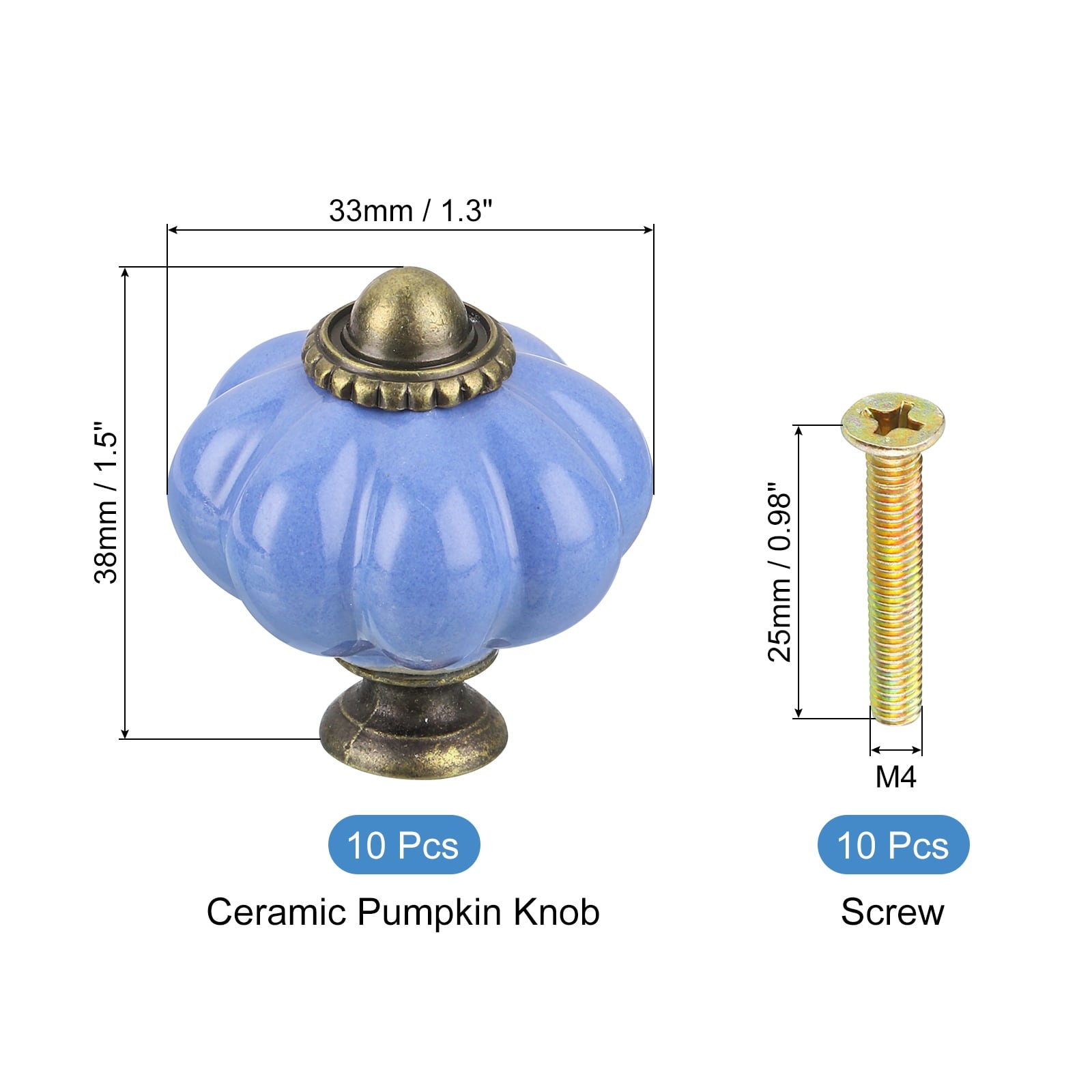 10pcs Dark Purple Pumpkin Knobs, Vintage Drawer Pulls with 10 Screws, Ceramic