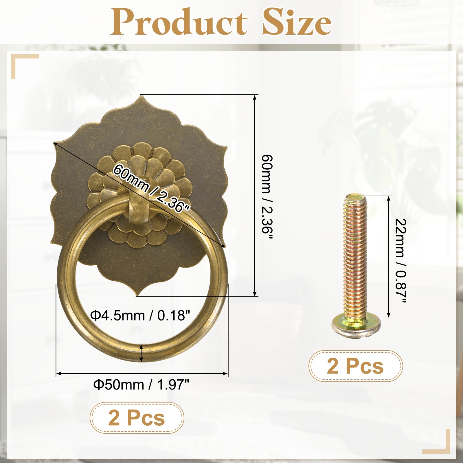2" Brass Drawer Pulls and Knobs with Screws, Flower Shape, Gold Tone