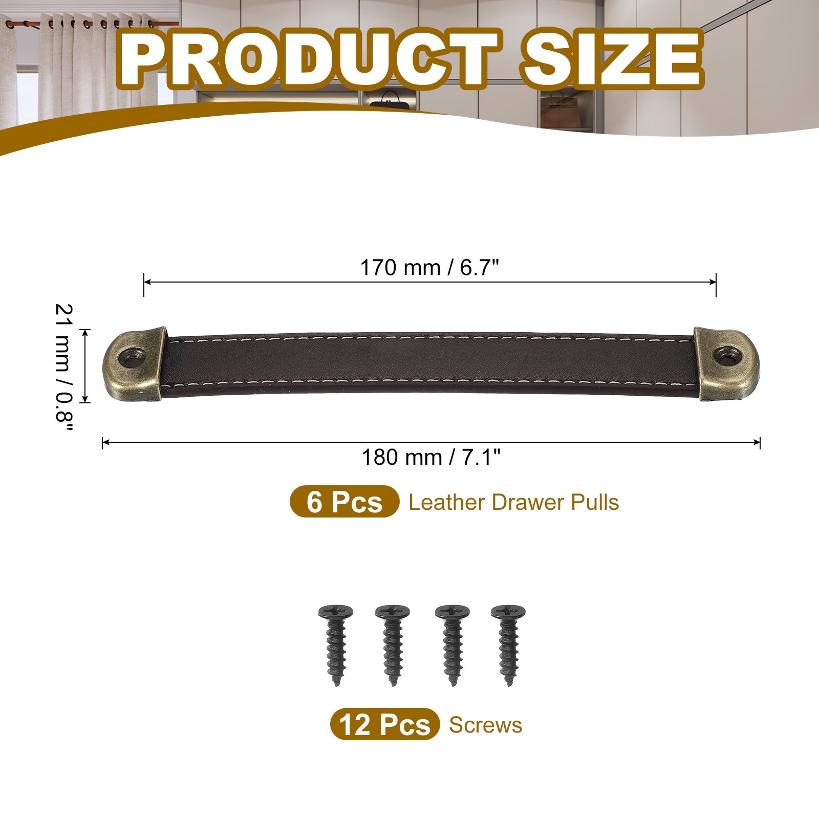 6 Pcs 5.7" Leather Drawer Pulls with Iron Sheet with 18mm Screws Black