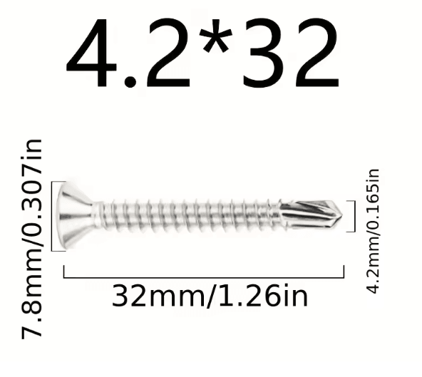 50 Piece 410 Stainless Steel Flat Head Self Drilling Screws M4.2 4.2x 32 50pcs