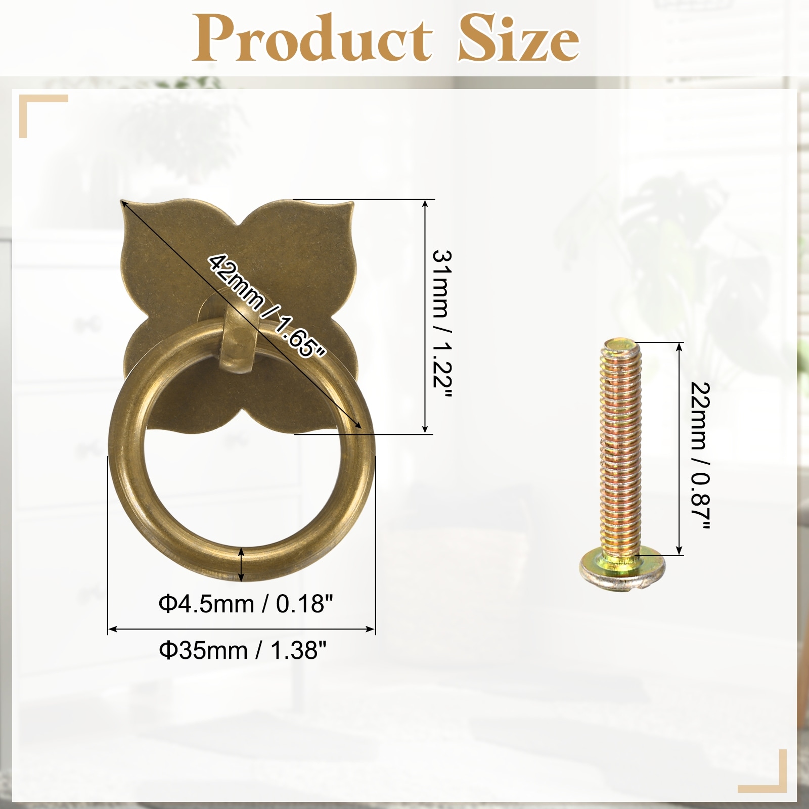 1.38" Brass Drawer Pulls and Knobs with Screws, Flower, Gold Tone