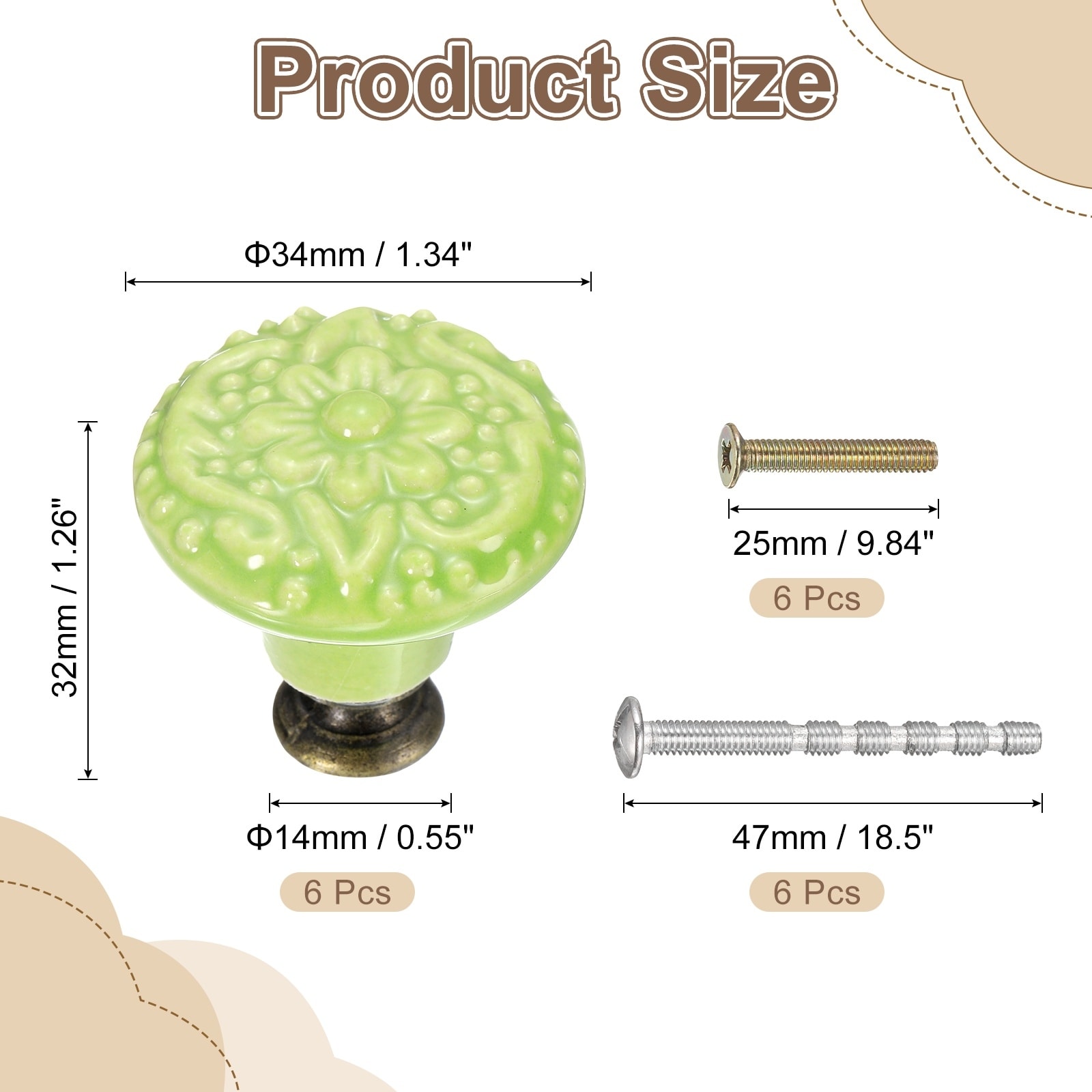 10Pcs 34mm Flower Pattern Raised Base Ceramic Knobs with Screws, Gray