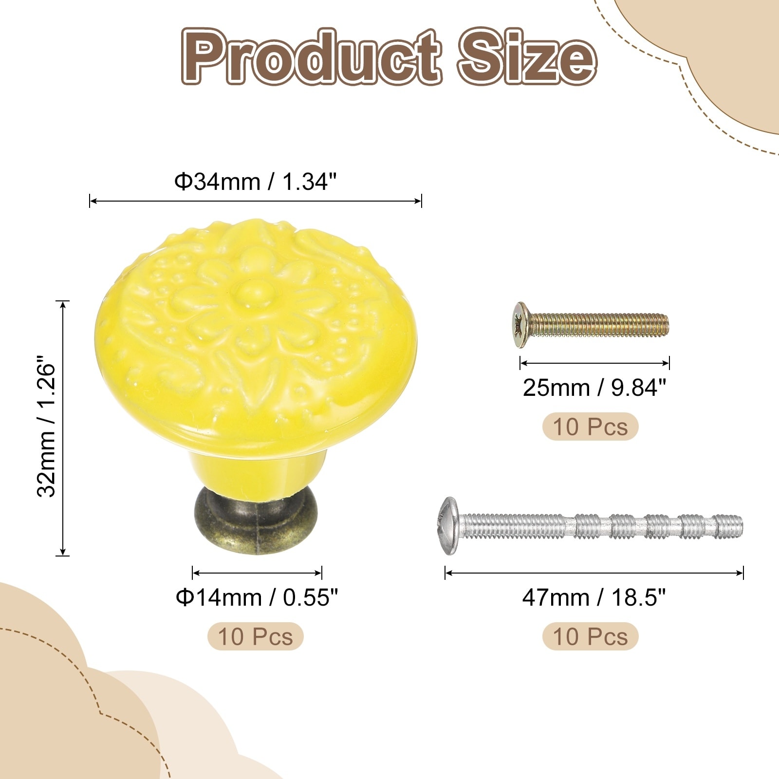 10Pcs 34mm Flower Pattern Raised Base Ceramic Knobs with Screws, Gray