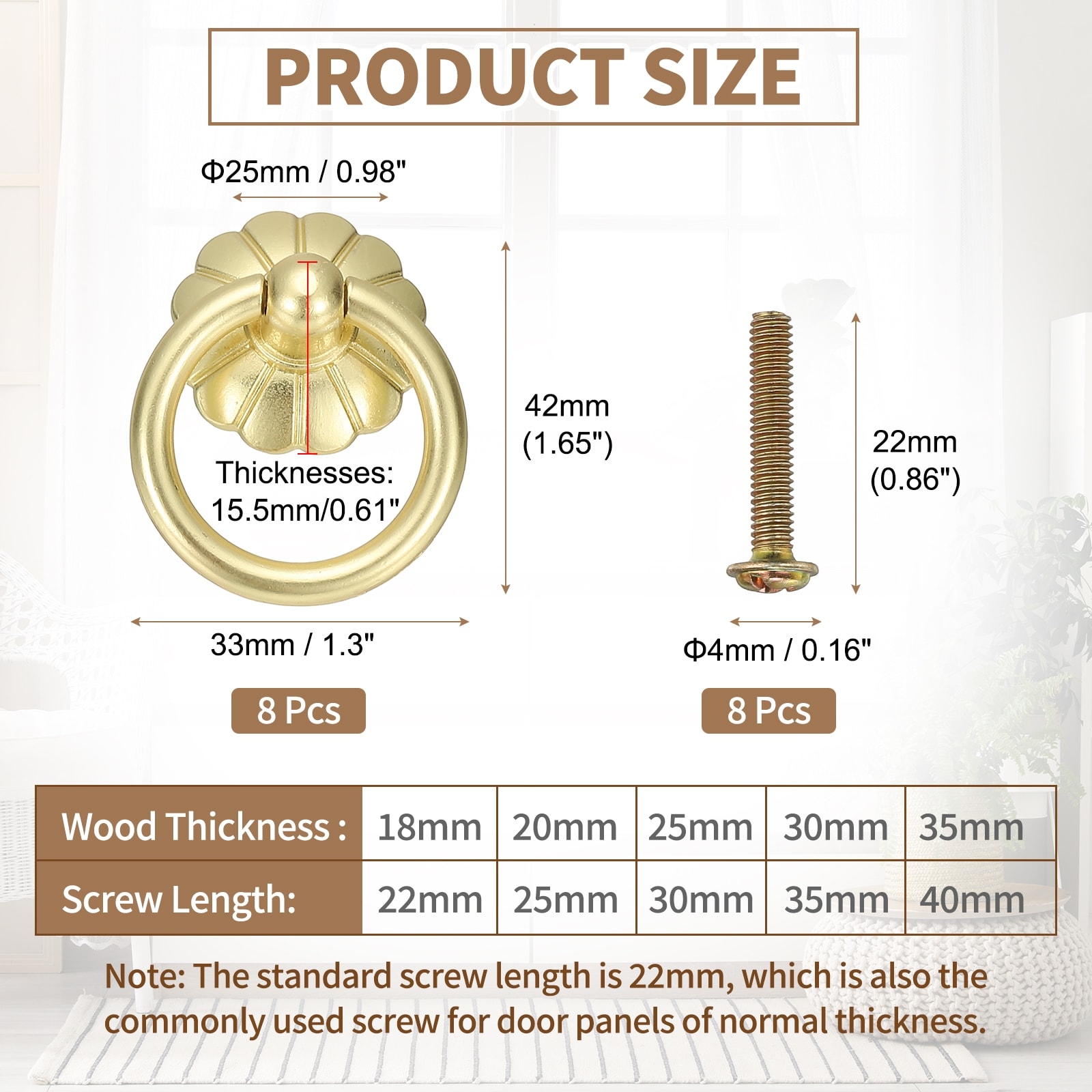 2" Brass Drawer Pulls and Knobs with Screws, Flower Shape, Gold Tone
