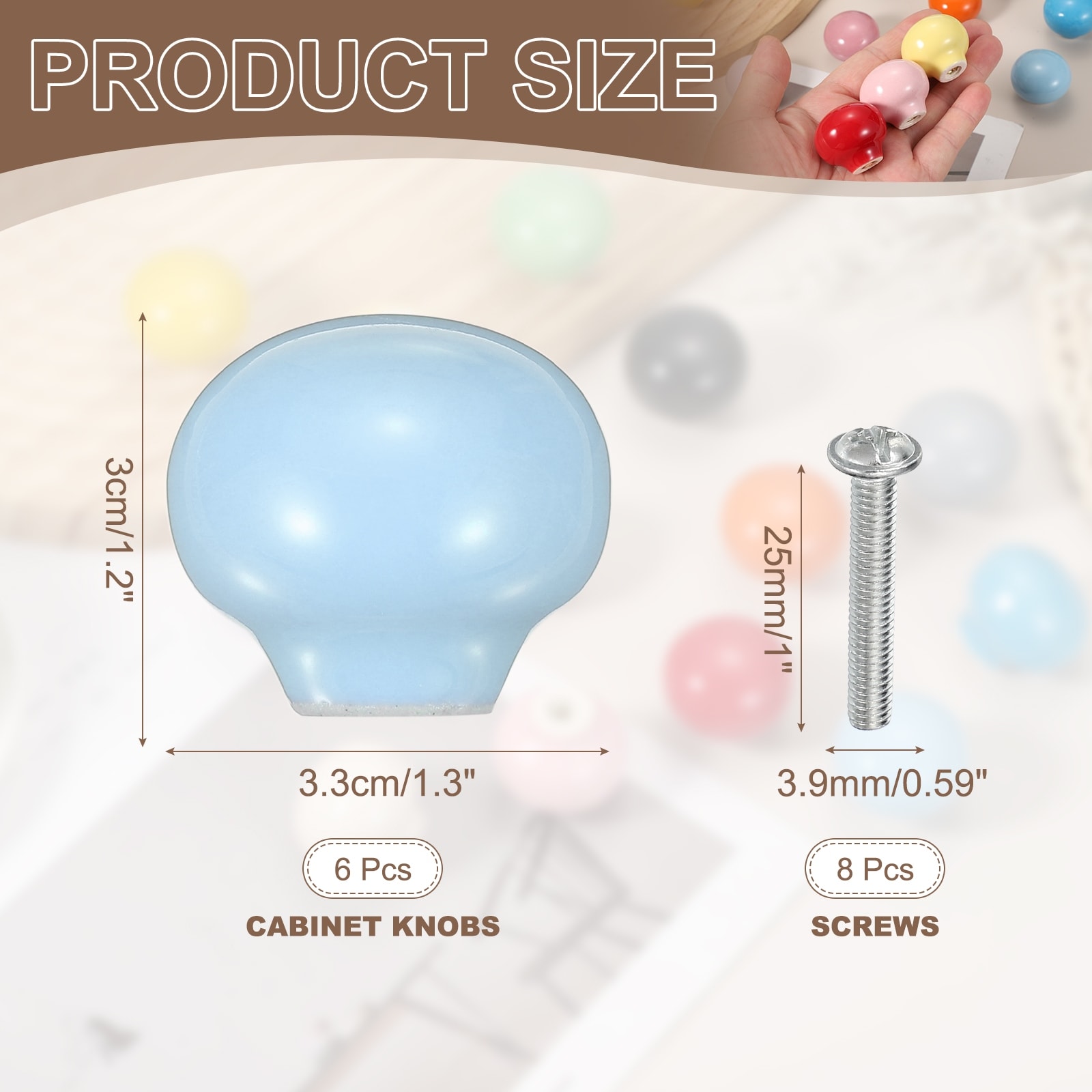 6 Pack Cabinet Knobs, 1.3 Inch Vintage Round Drawers Handles Knob, White