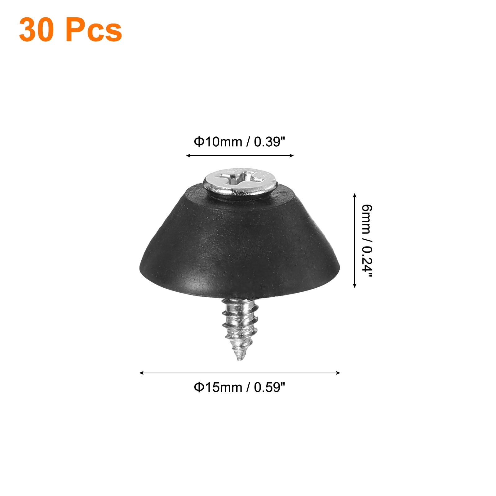 30 Pcs 0.59x0.24 Inch Round Rubber Furniture Feet with Screws, Black - 0.59x0.24 Inch