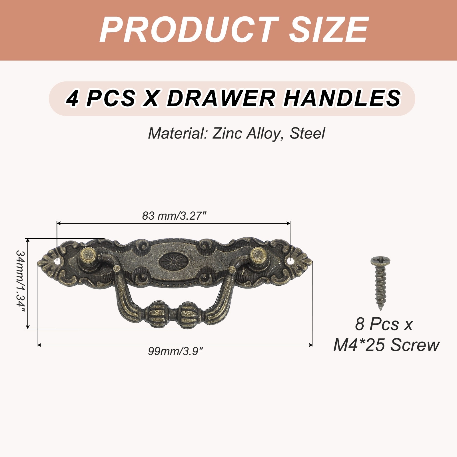 Vintage Decorative Handles 3.9x1.34", 4 Pcs Handles with Screws, Bronze Tone