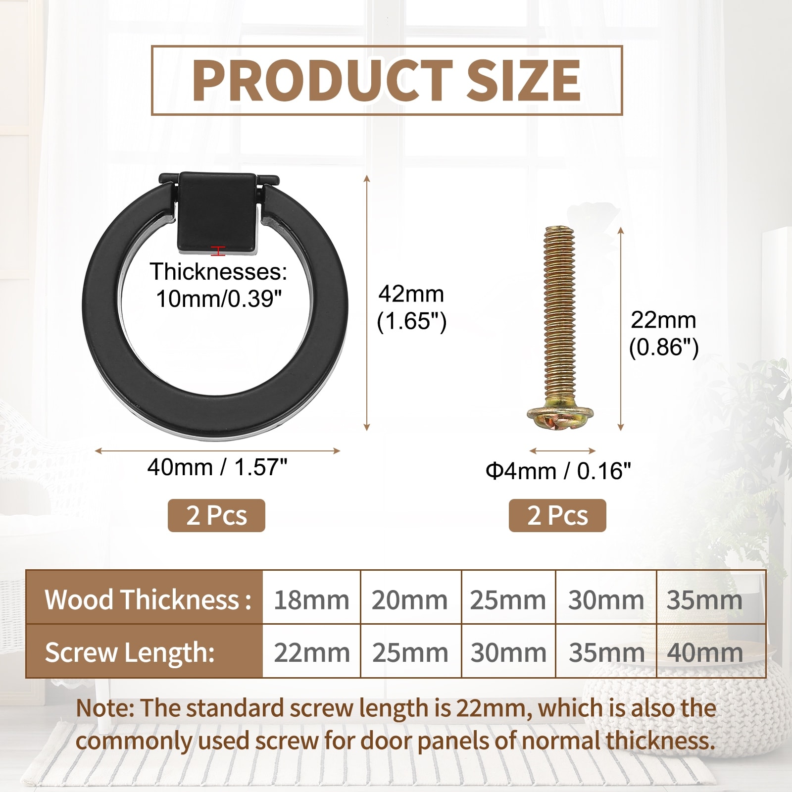 2Pack 1.57" Zinc Alloy Drawer Ring Pull Handles for Cupboard, Gold
