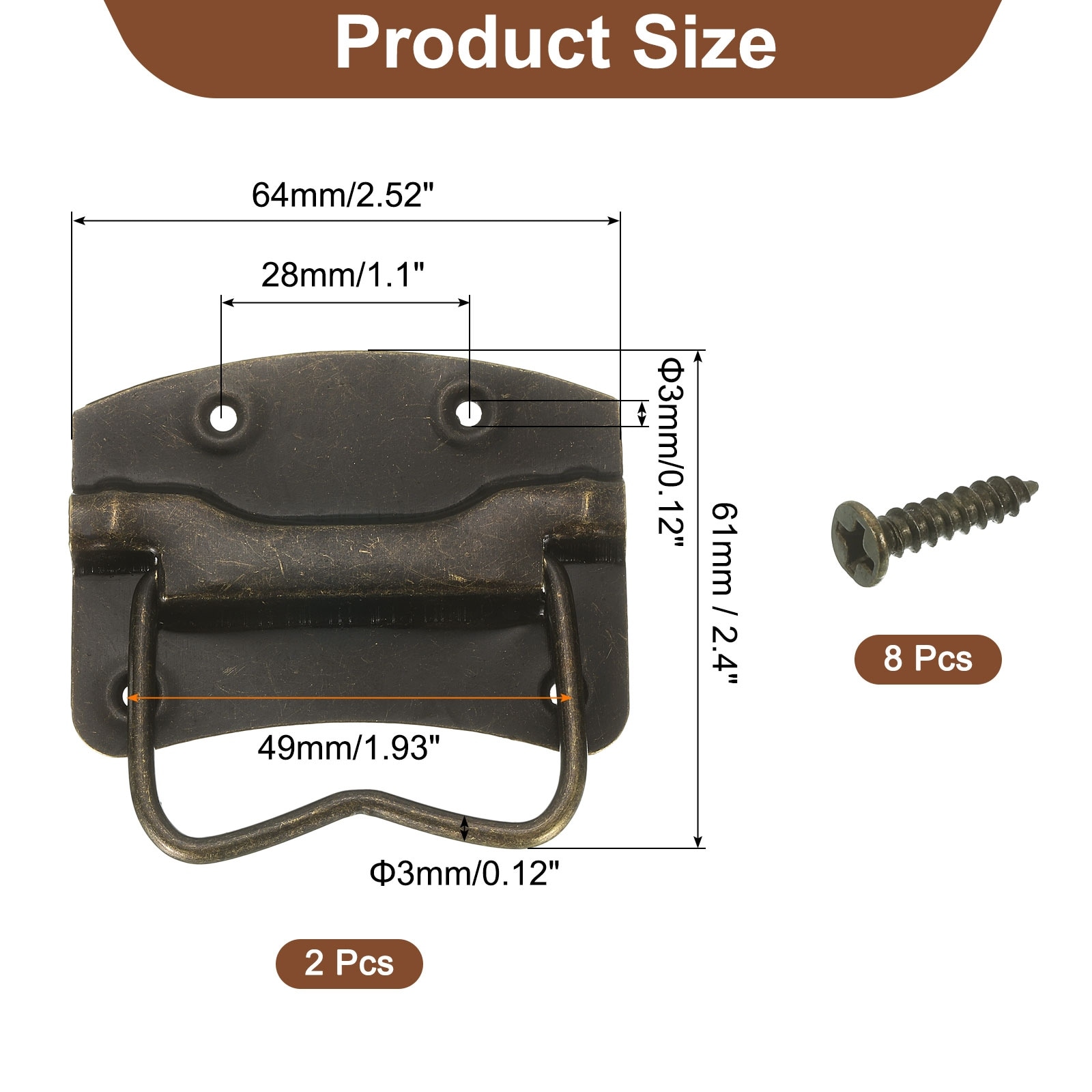2Pcs Chest Handles, 42x44mm Wooden Box Ring Pull Lifting Handle, Bronze