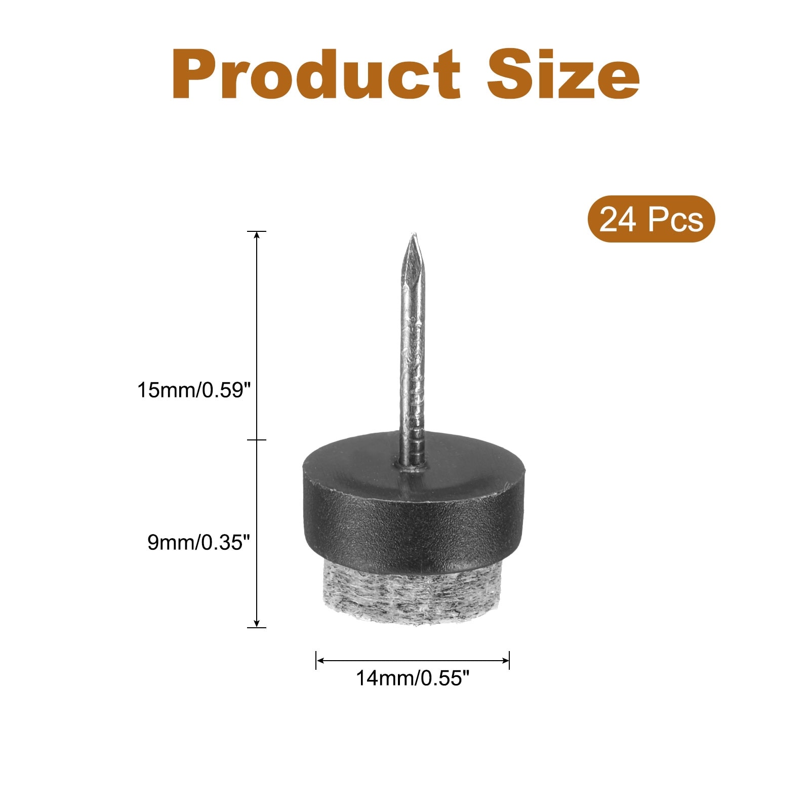 24Pcs Nail-on Felt Furniture Pads Round Furniture Sliders(14mm, Black)