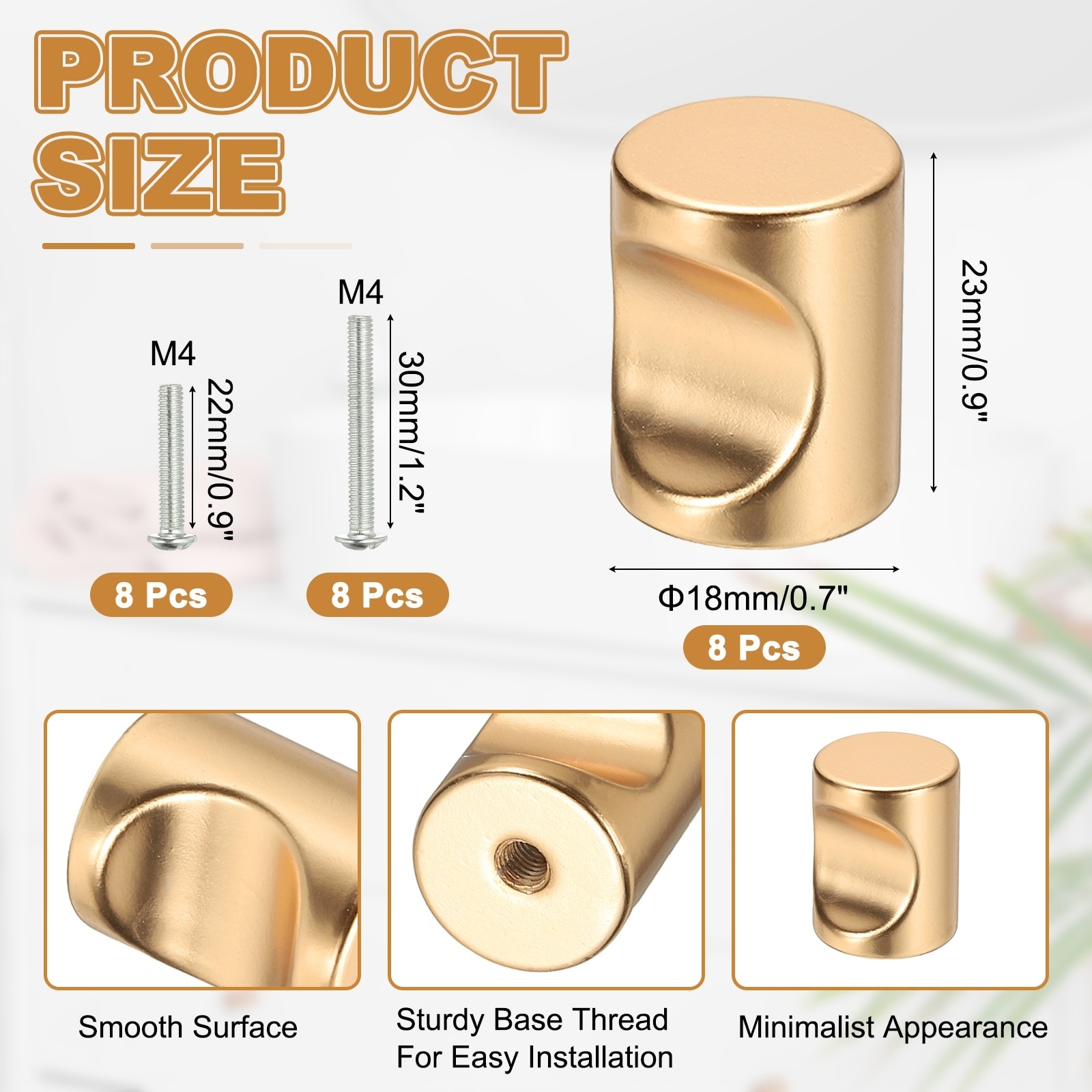 8 Pcs Cylindrical Aluminum Alloy Knobs, Single Hole Pull with Screw, 16mm Silver