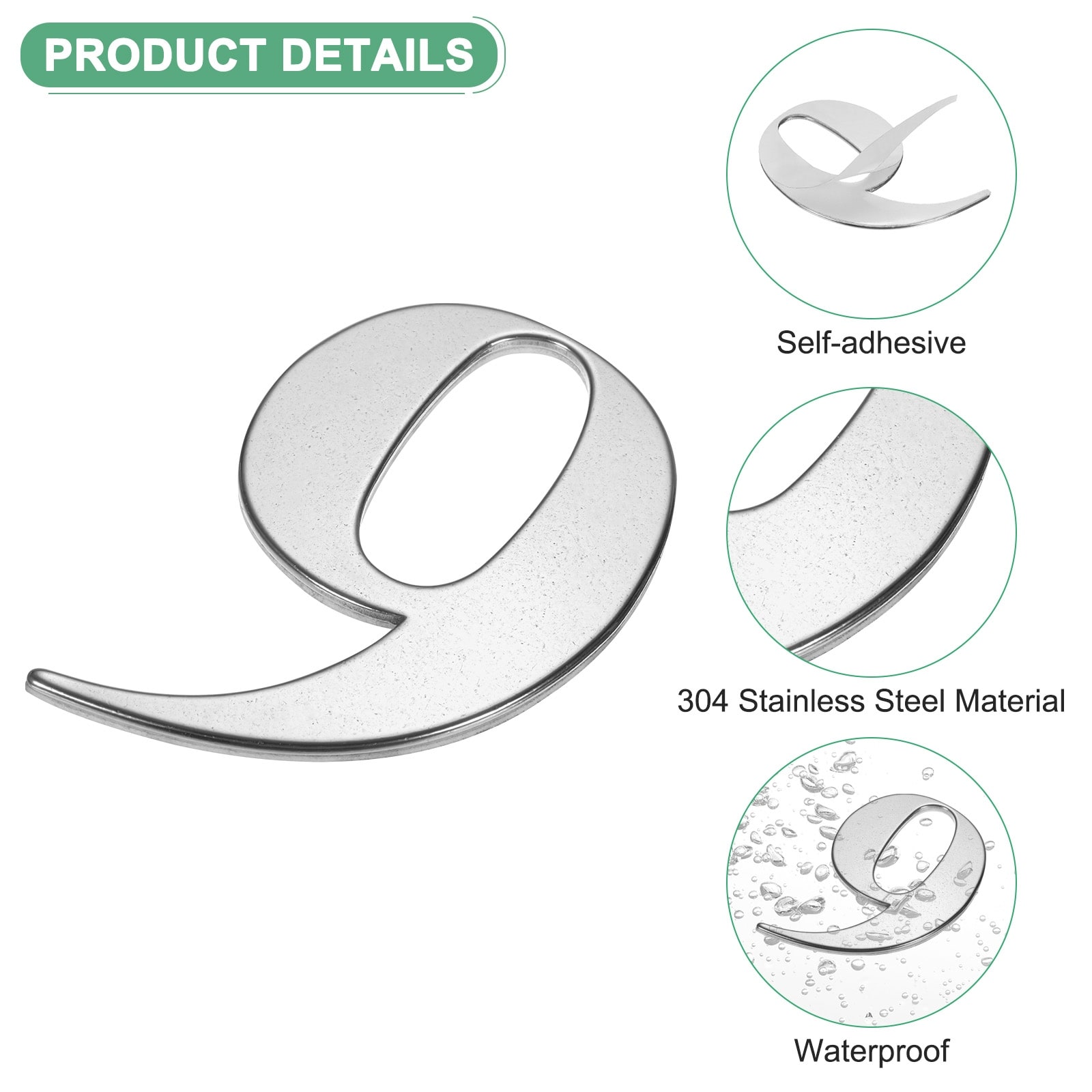 Self-adhesive House Number, 304 Stainless Steel Mailbox Number Address Number, House Number for Outside - 1 Pcs