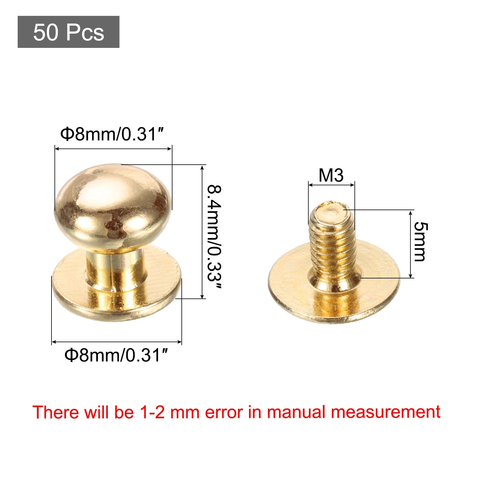 50 Pcs M3*5 Mini Round Knobs, 6mm Small Drawer Pulls, Gold