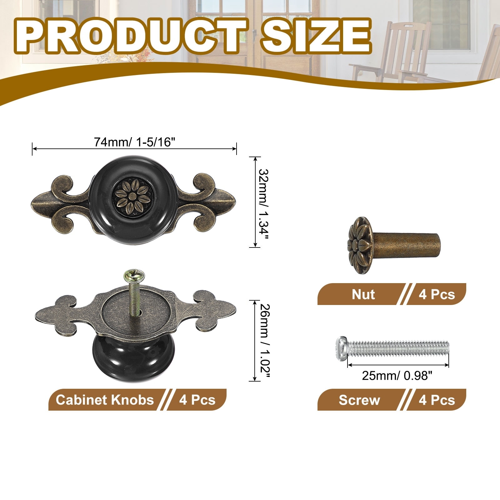 4 Pcs Retro Ceramic Cabinet Knobs 1-1/4" Vintage Dresser Drawer Knobs, White