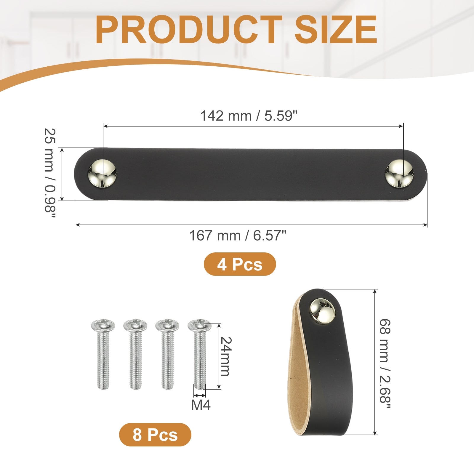 4 Pcs Leather Drawer Pulls 3.7 Inch Hole Center Dresser Door Handle Orange