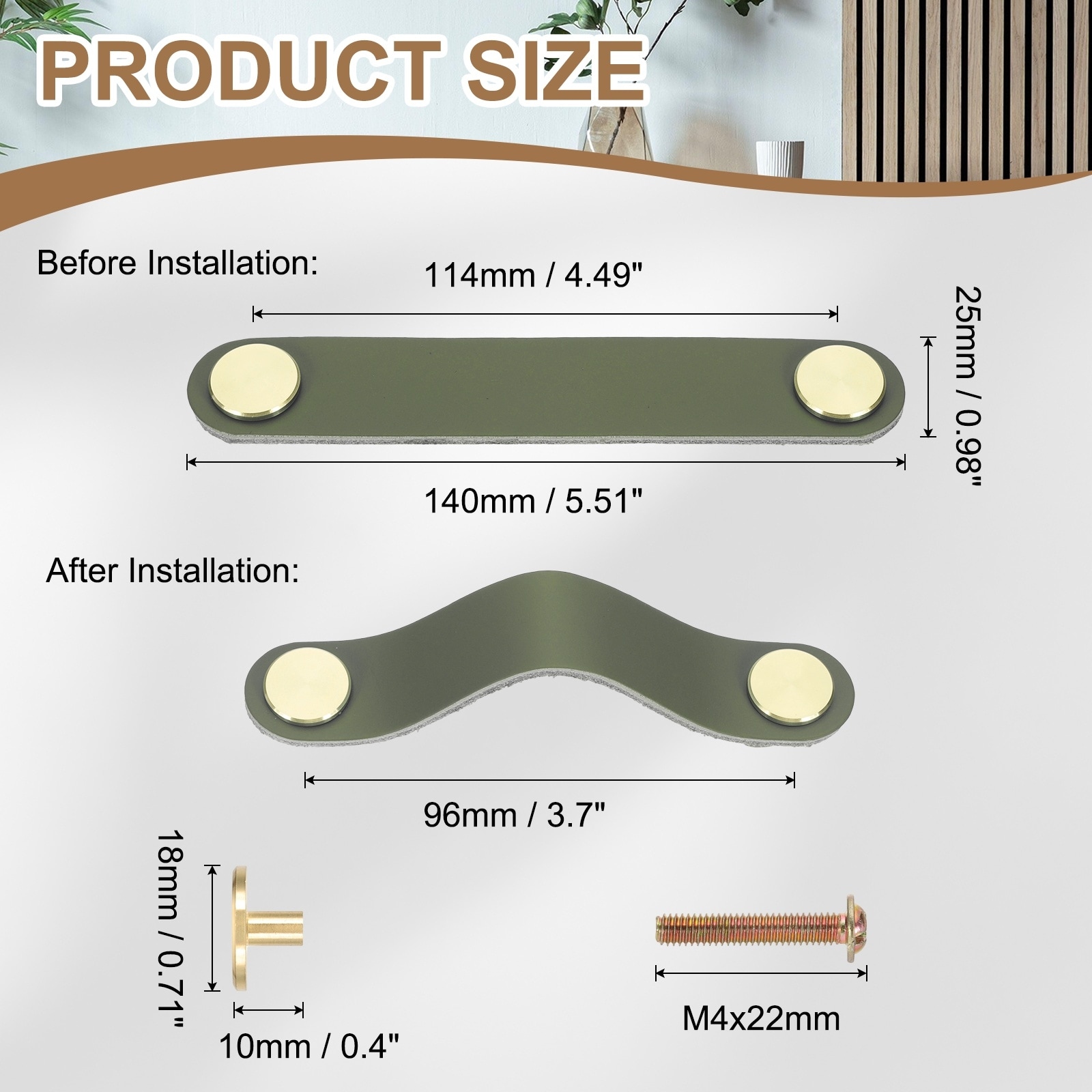 4 Pcs Leather Drawer Pulls Double Hole Leather Handle with Screw Brown