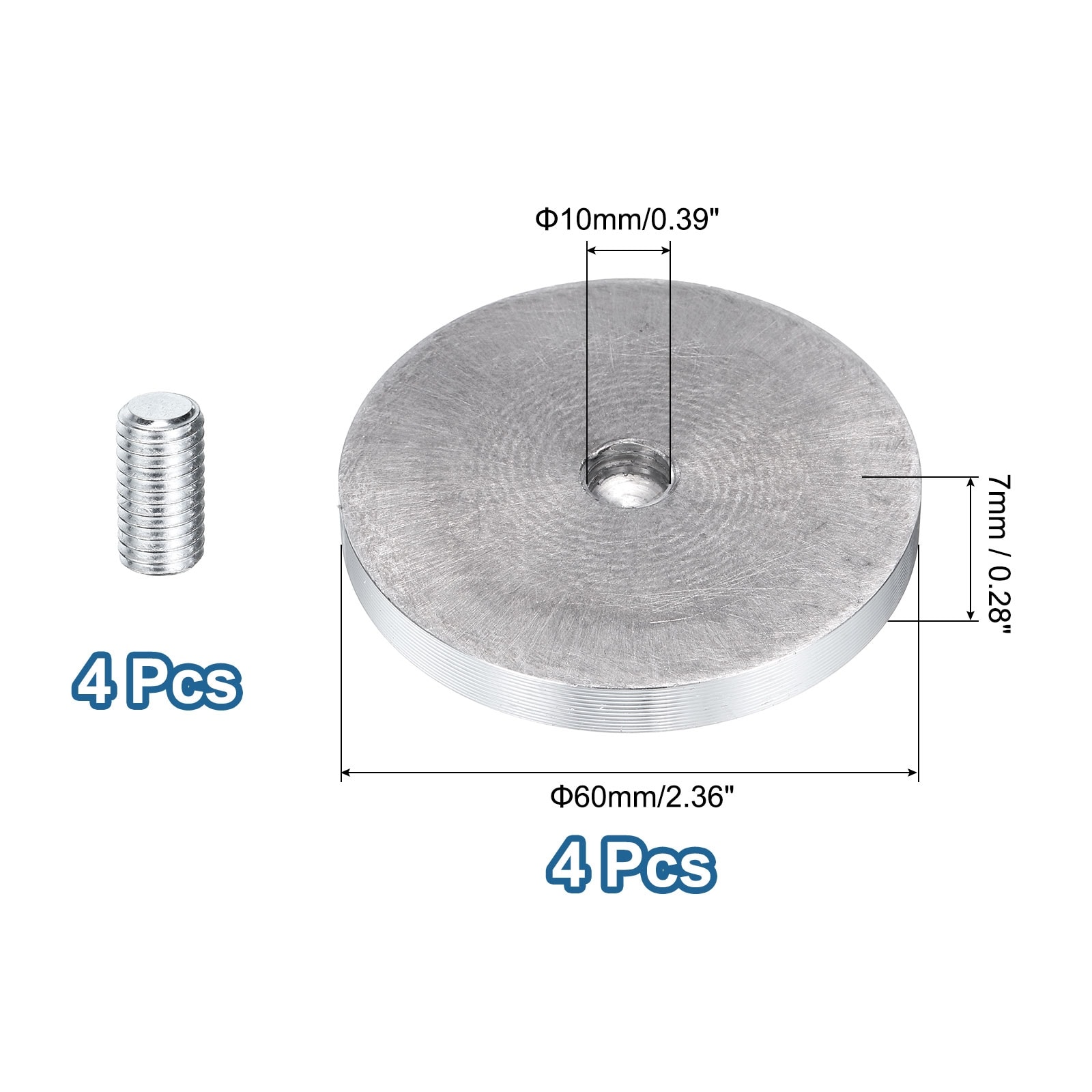 4pcs M6 Thread 20mm Diameter Round Shape Aluminum Disc Hardware, Silver
