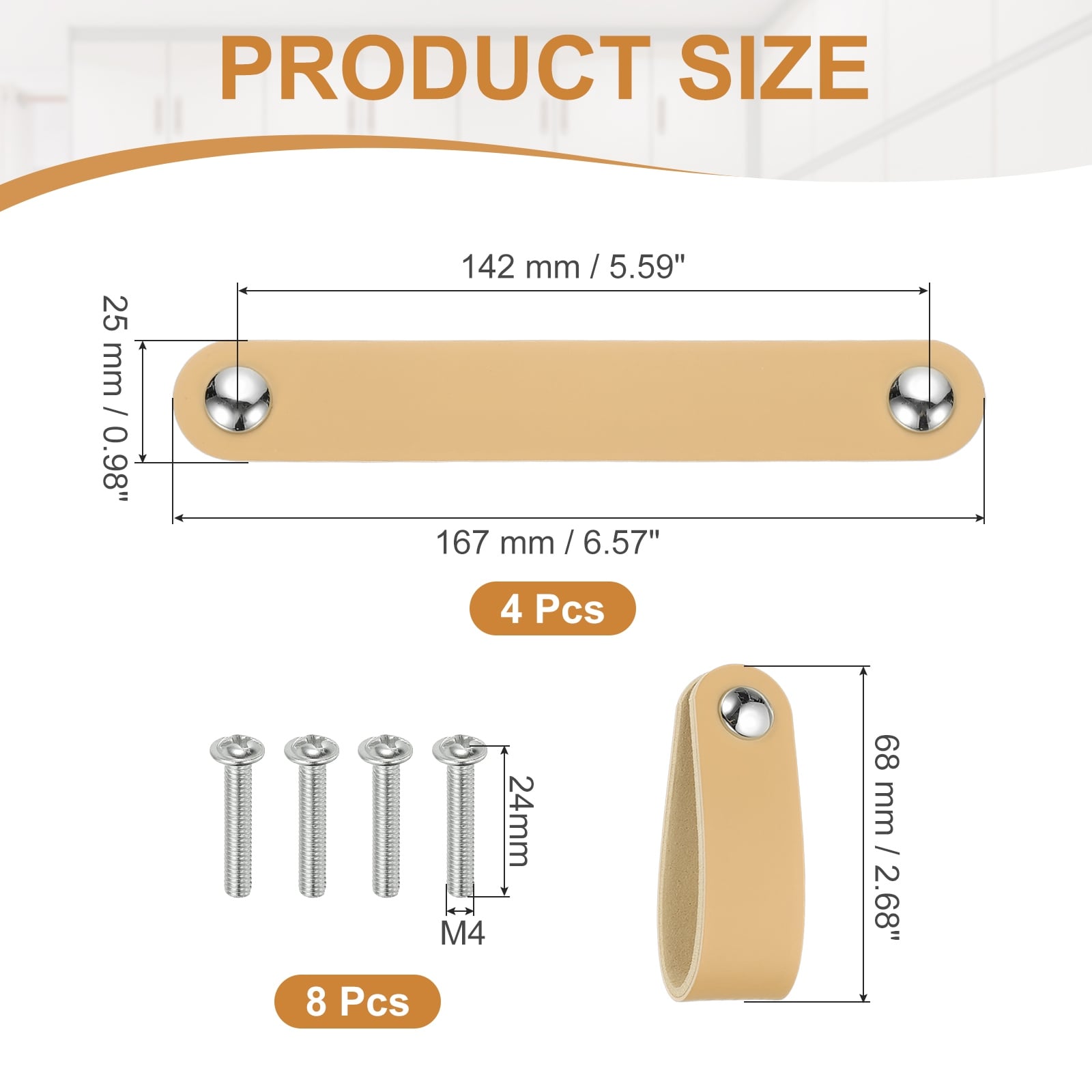 4 Pack Leather Drawer Pull Single Hole Leather Handle with Screws Coffee