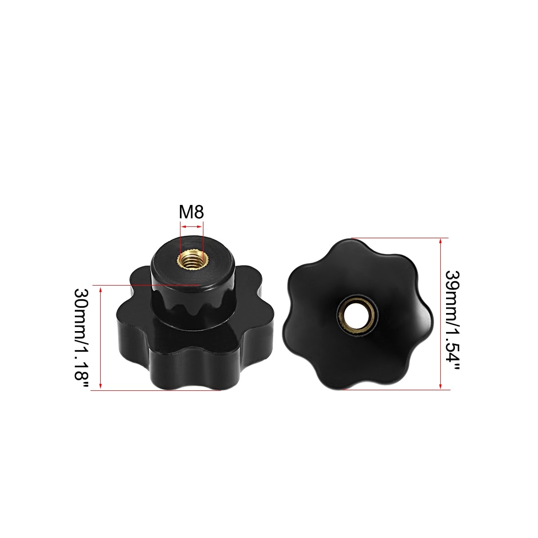 4 Pcs Star Knob Grip Handle M12 Diameter Brass Insert Female Thread Black