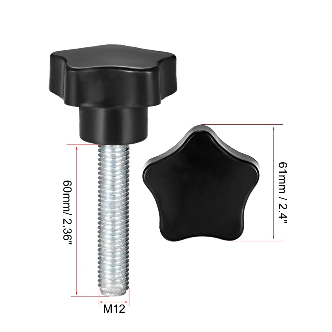 Star Knobs Grips M6 x 20mm Male Thread Steel Zinc Stud Black PP