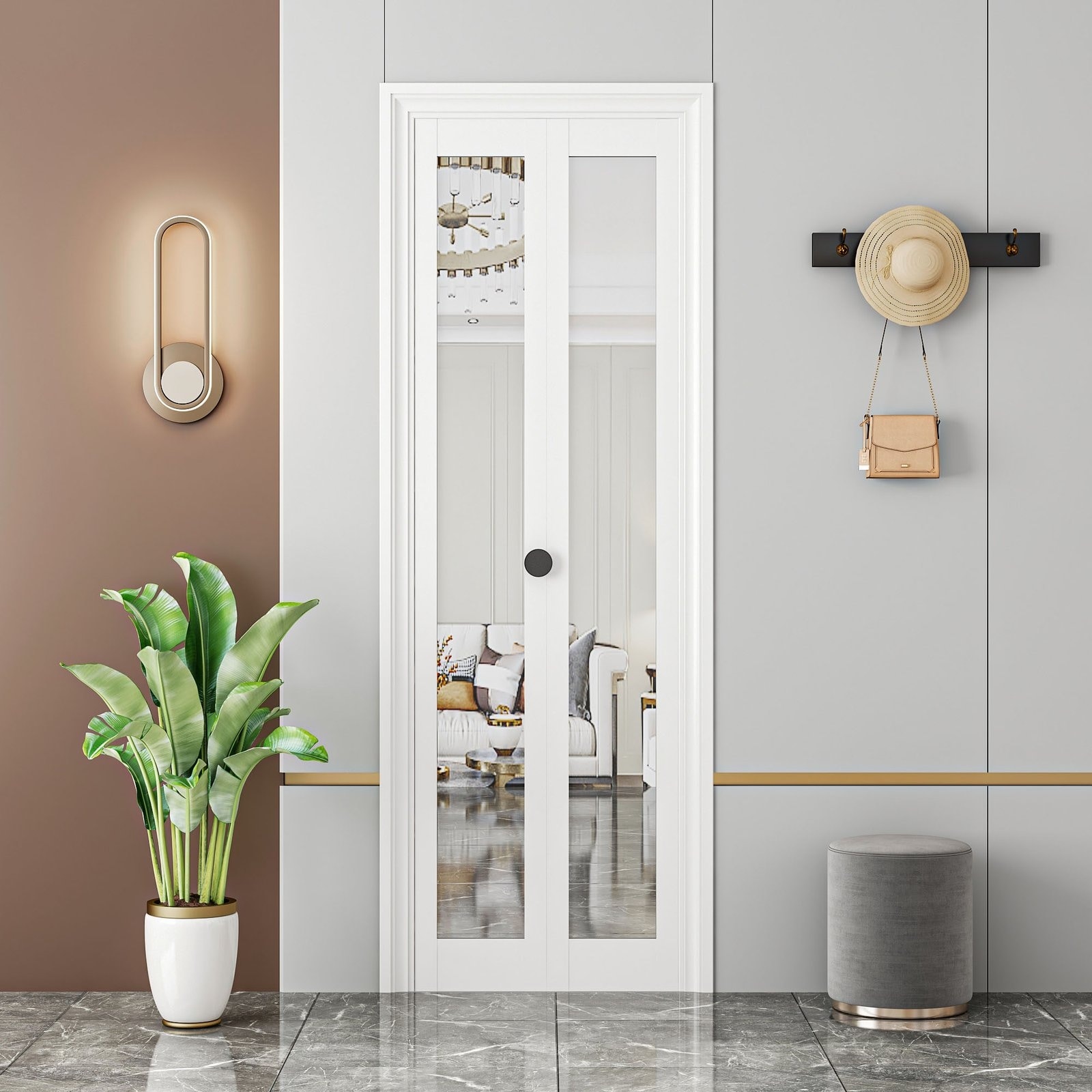 80 in.Double 1 Lite Mirrored Folding Bi-Fold Sliding Barn Door With Installation Hardware Kit