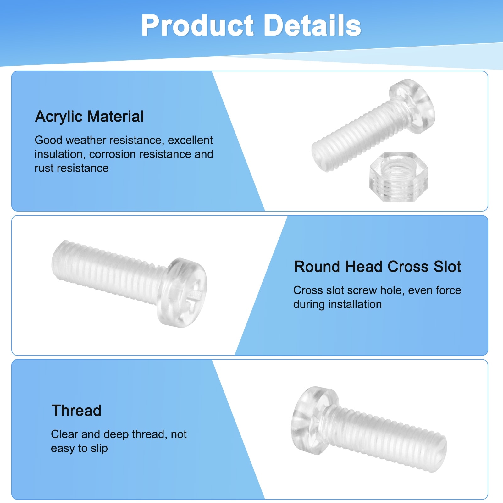 Clear Transparent Screws and Hex Nuts Kit, Acrylic Plastic Cross-recessed Round Head Screws for Machine Accessories