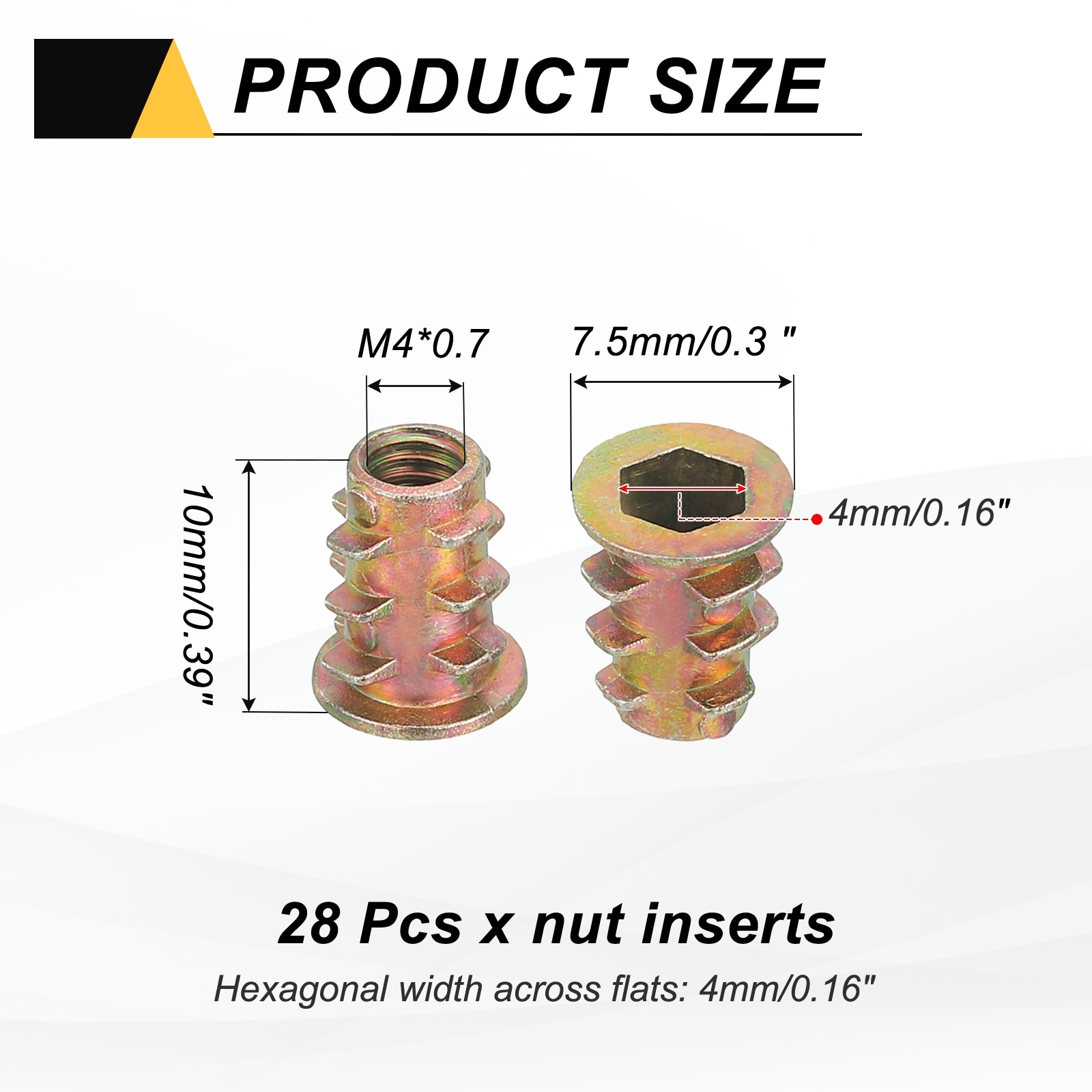 Threaded Inserts for Wood, Zinc Alloy Thread Inserts Nuts Hex Socket Drive Screw for Furniture, Cabinet, Tables and Chairs