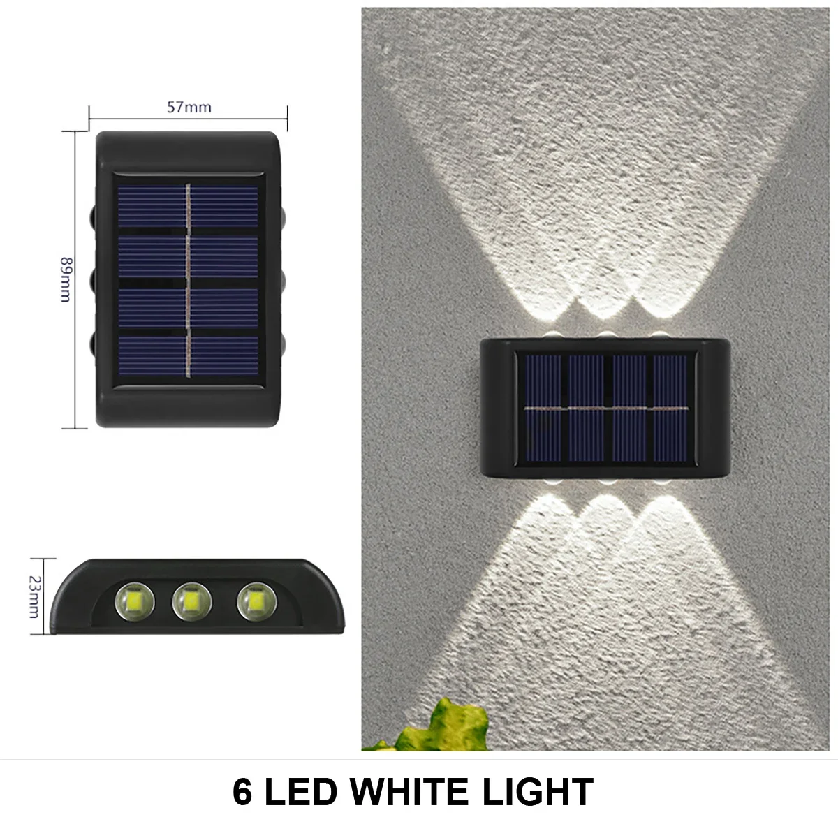 Ultra Durable Solar Wall Lamp Outdoor Waterproof Solar Powered Light Up And Down Illuminate Home Garden Yard Decoration 6led white