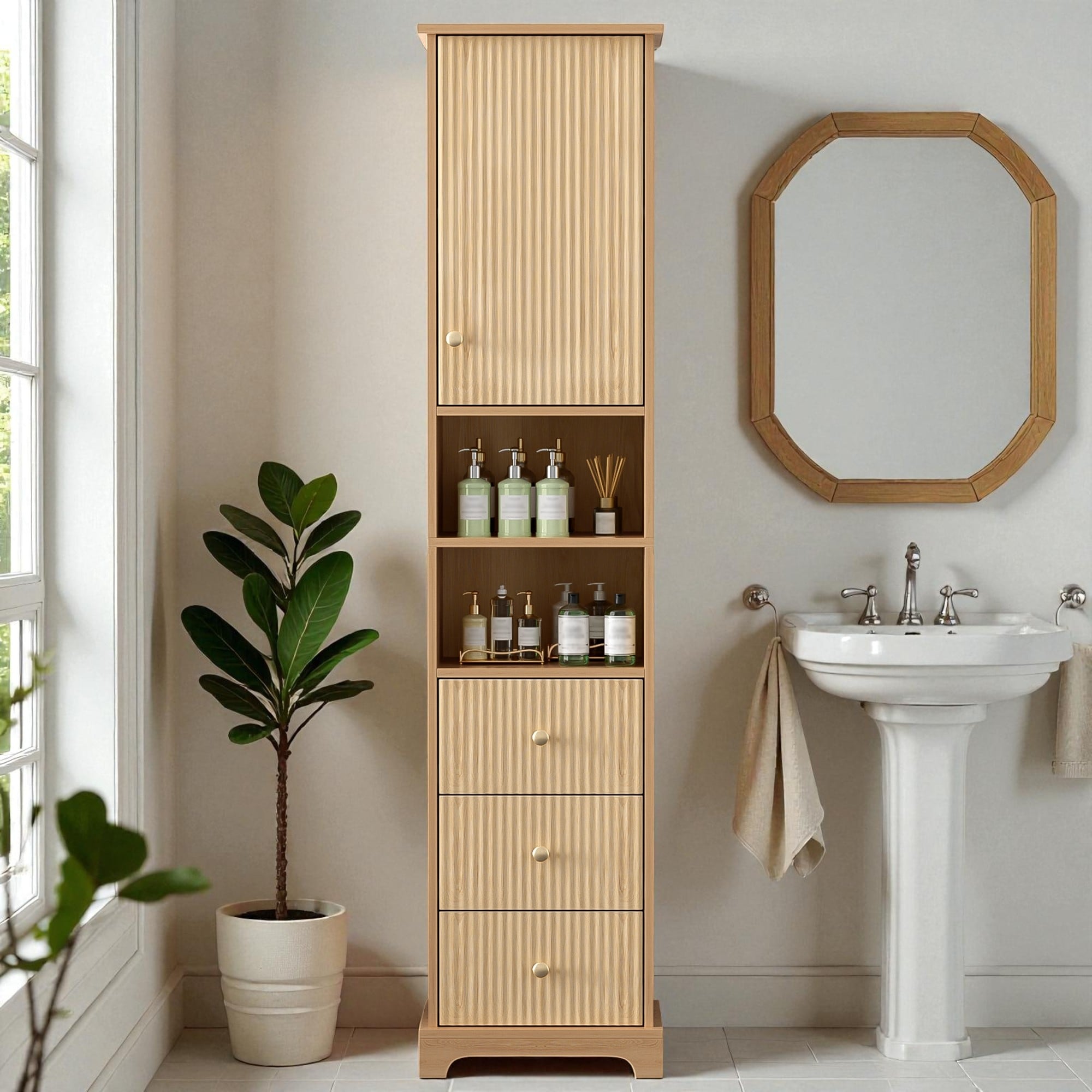 Freestanding Bathroom Cabinet with Adjustable Shelf, Soft-Close Door and Drawers, Tall Storage Vanity 15.7"W×11.8"D×67.7"H